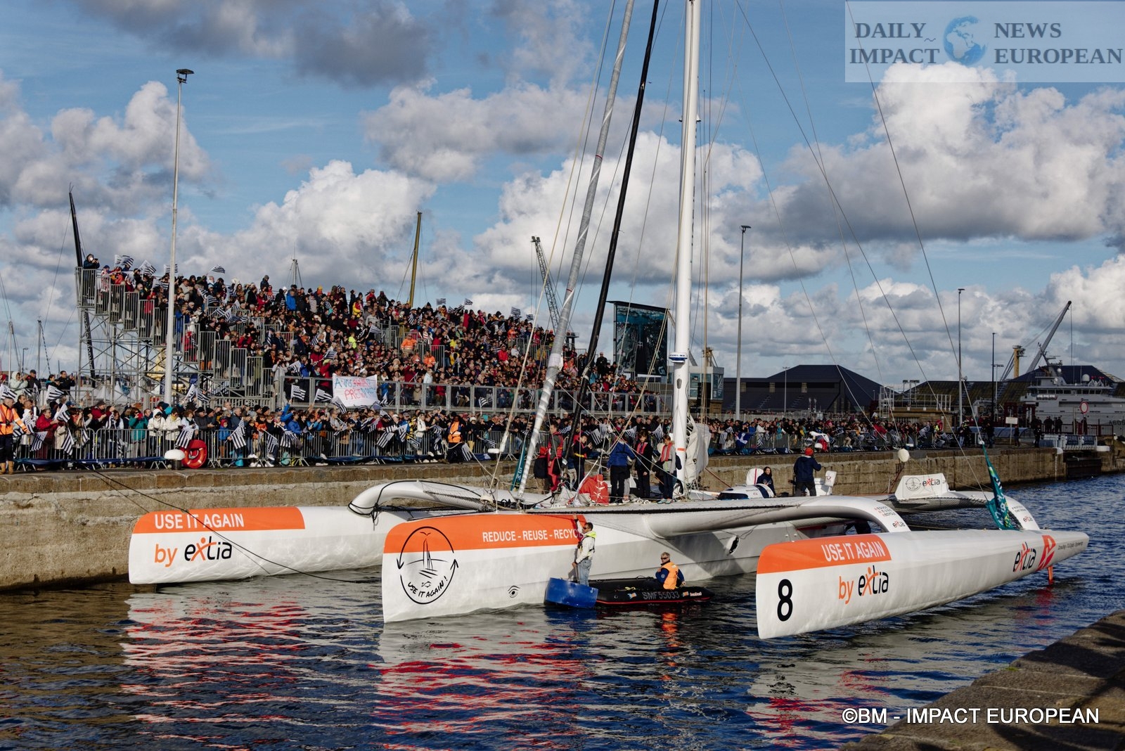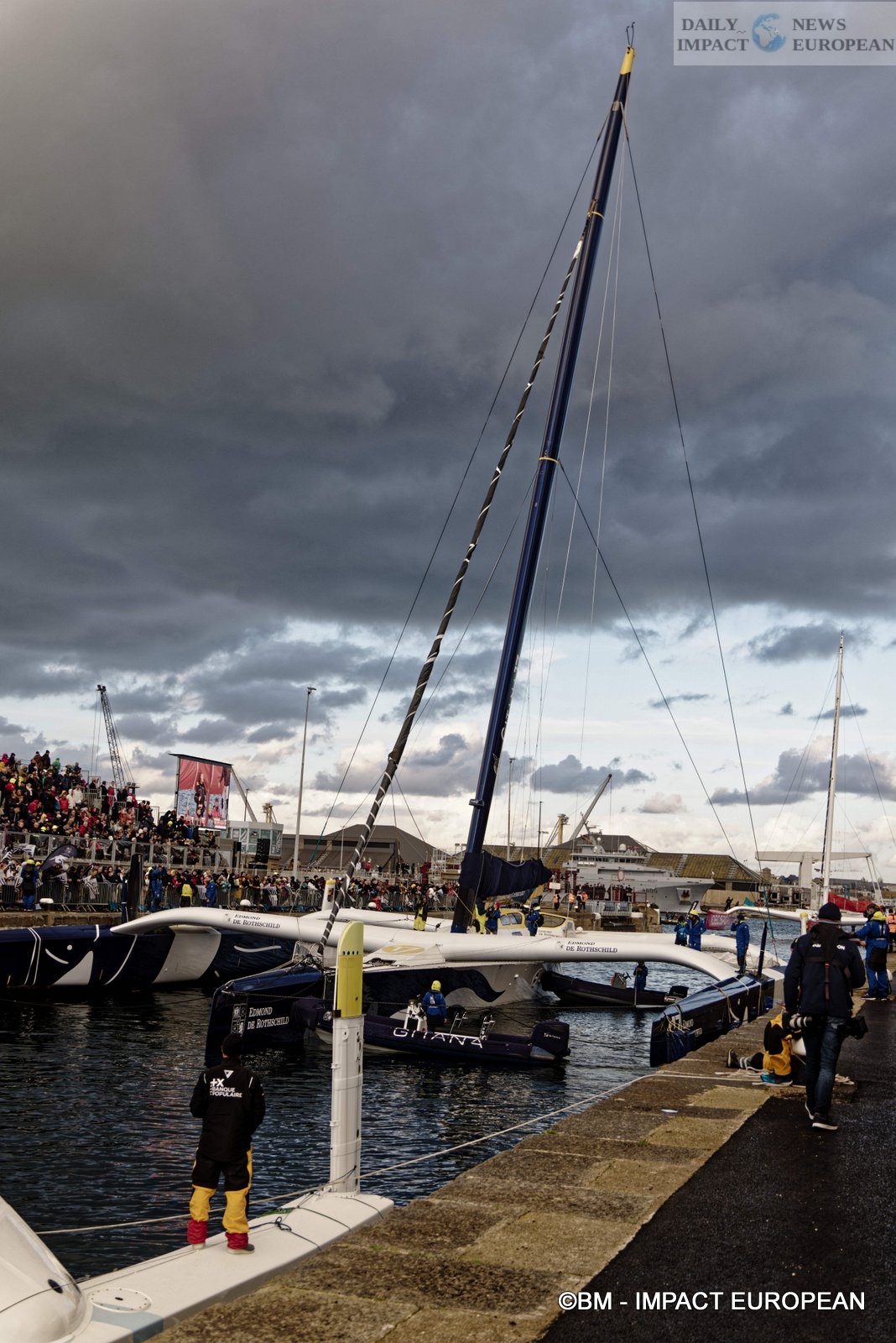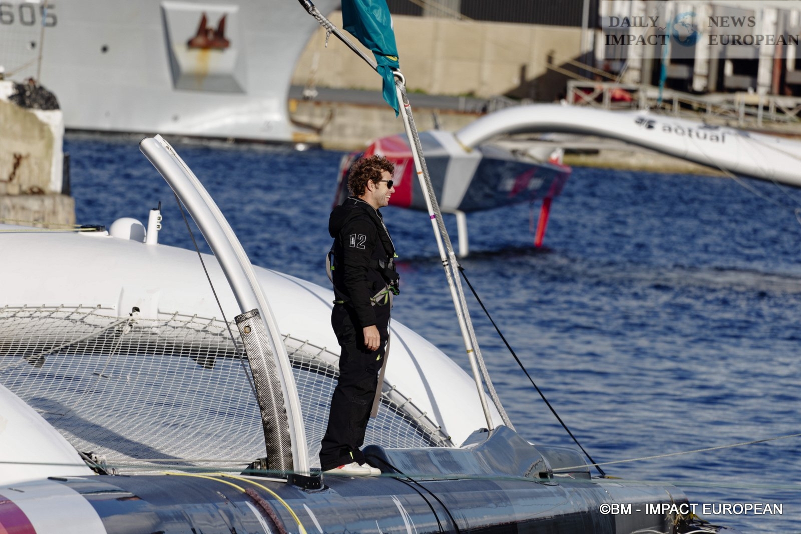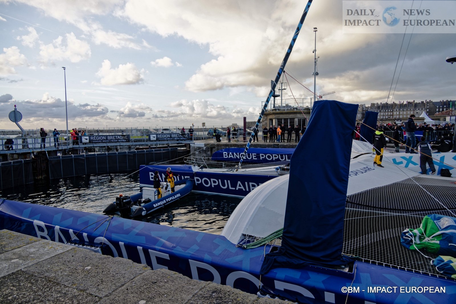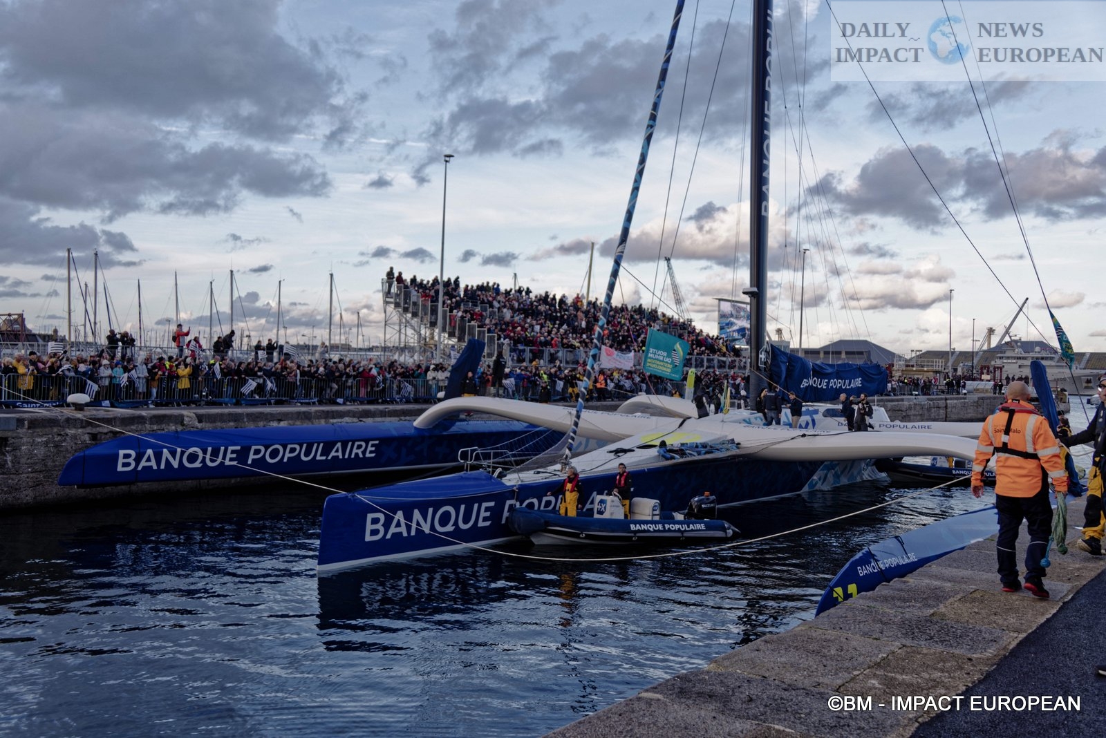 – Armel Le Cléac’h (Maxi Banque Populaire XI) reached his home port, Lorient, around 11 p.m. His team carried out a complete check of the boat and had to reinstall the initial daggerboard so that the maxi trimaran could go back to sea.