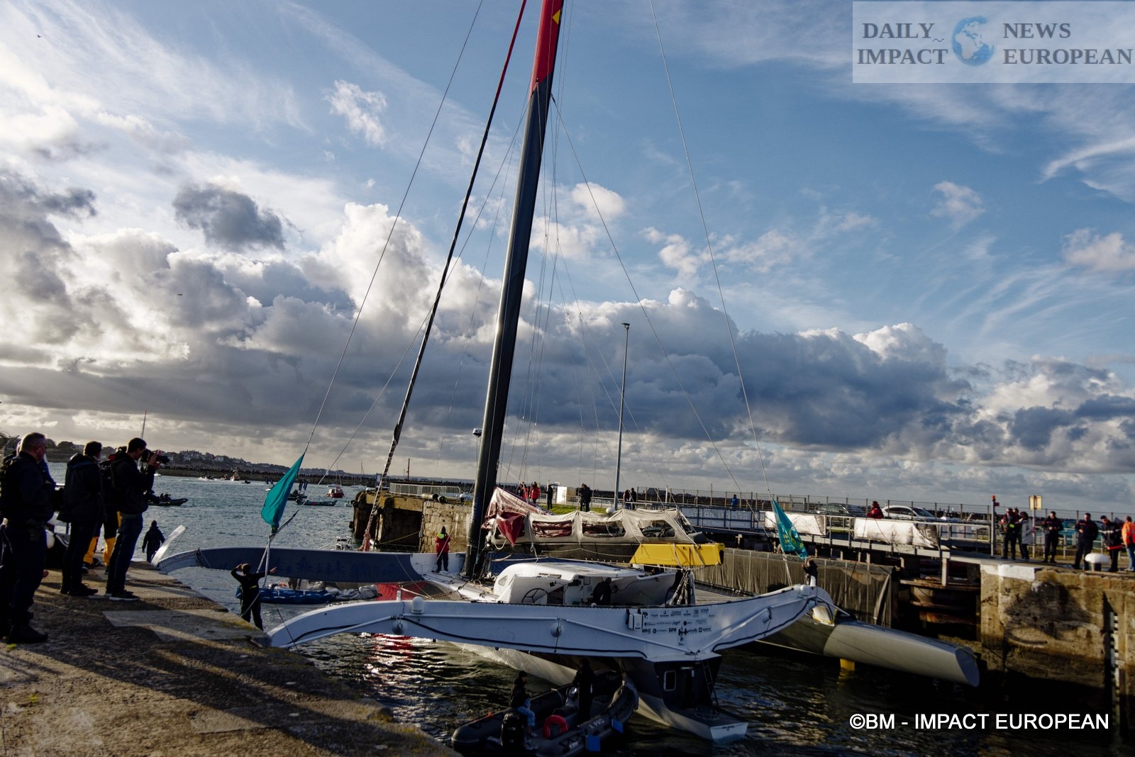 – Geoffrey MATACZYNSKI, after an autopilot problem and the genoa torn on the evening of November 9, Geoffrey Mataczynski on the Class 40 Fortissimo turned around and arrived Thursday morning in Saint-Malo to diagnose and repair the boat;