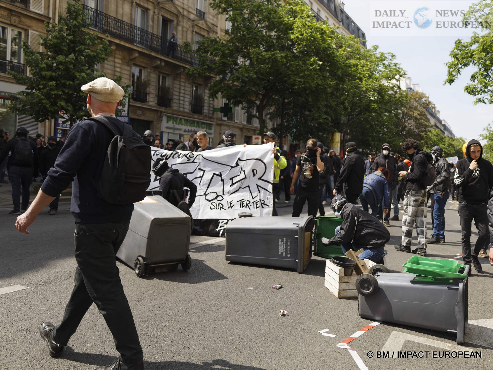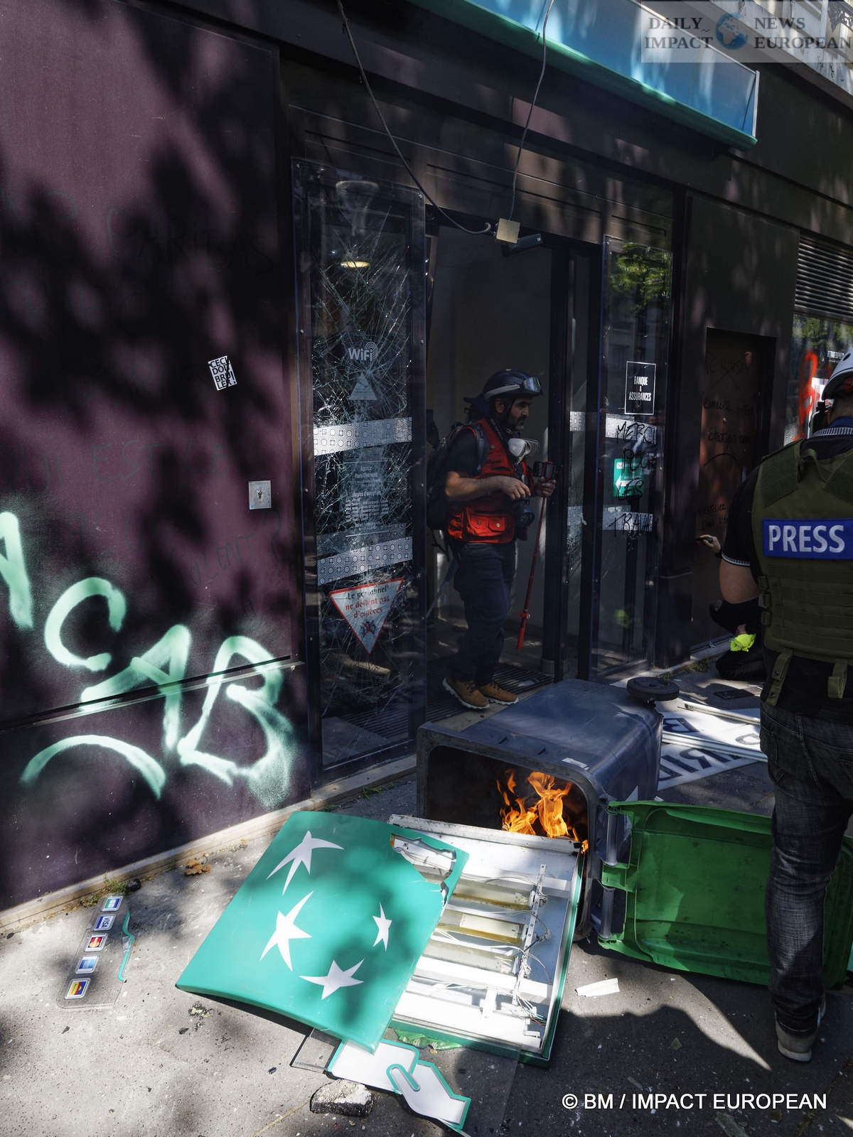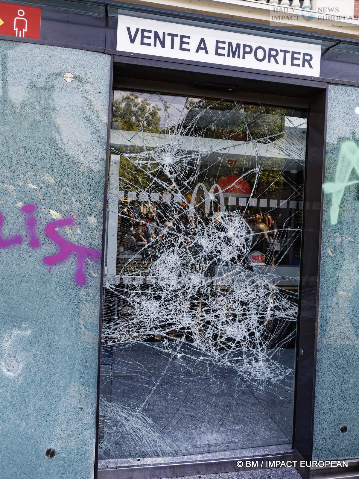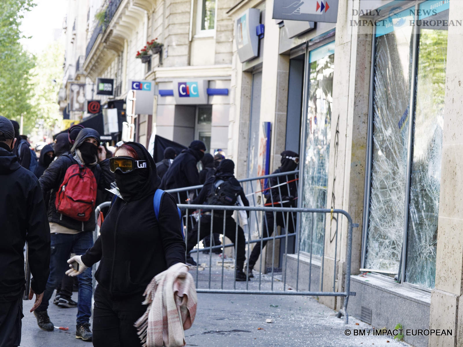 The violence was mainly concentrated at the front of the procession. Several dozen black-blocks (thugs) methodically targeted symbols of capitalism: « real estate agencies, banks or fast food chains like McDonald’s. An organic store was looted. Some billboards or garbage cans were burned all the way. »