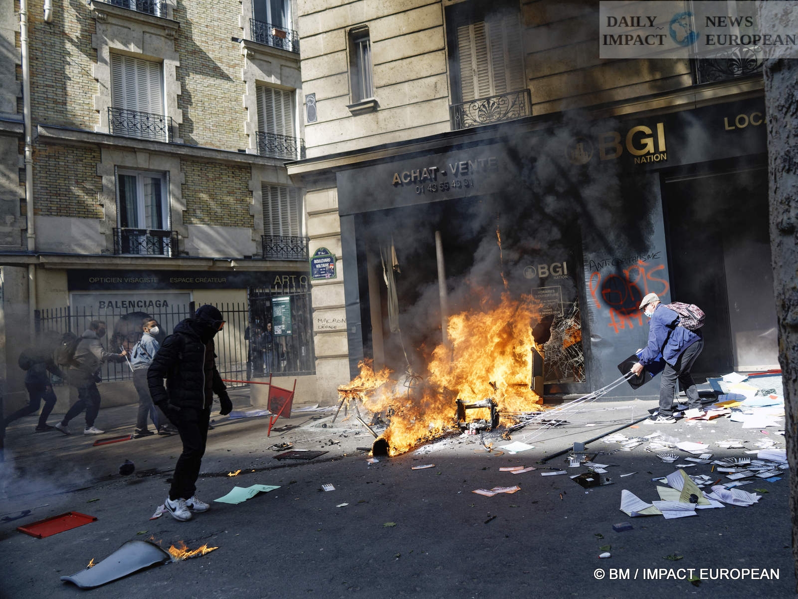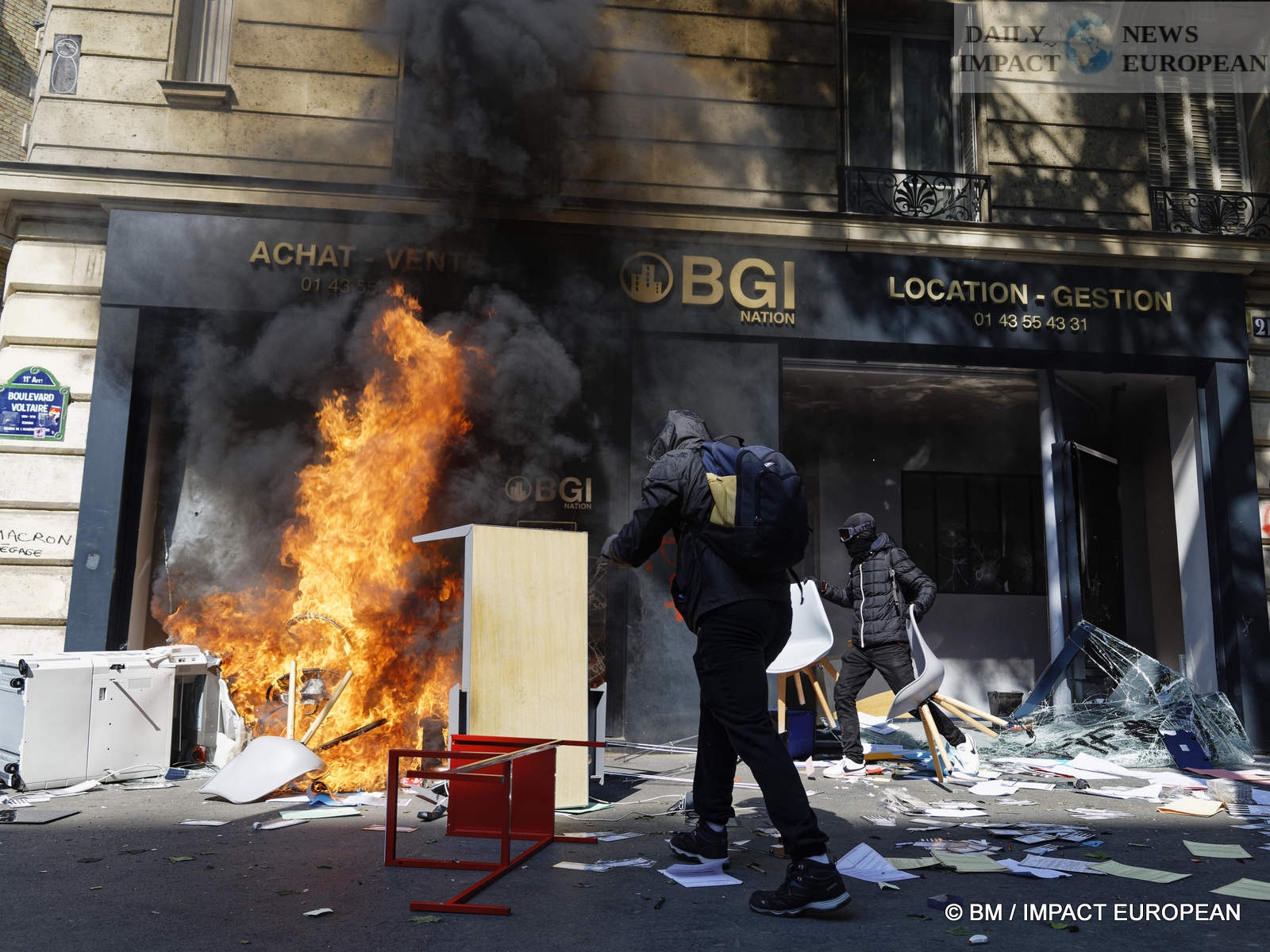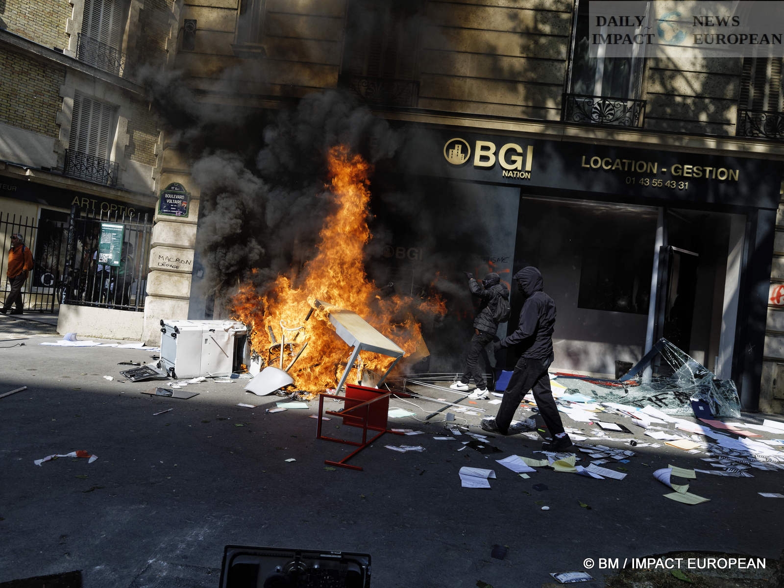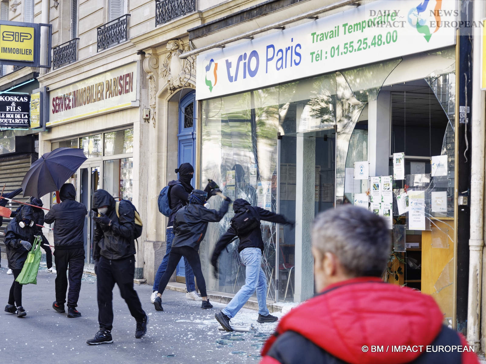 The violence was mainly concentrated at the front of the procession. Several dozen black-blocks (thugs) methodically targeted symbols of capitalism: « real estate agencies, banks or fast food chains like McDonald’s. An organic store was looted. Some billboards or garbage cans were burned all the way. »