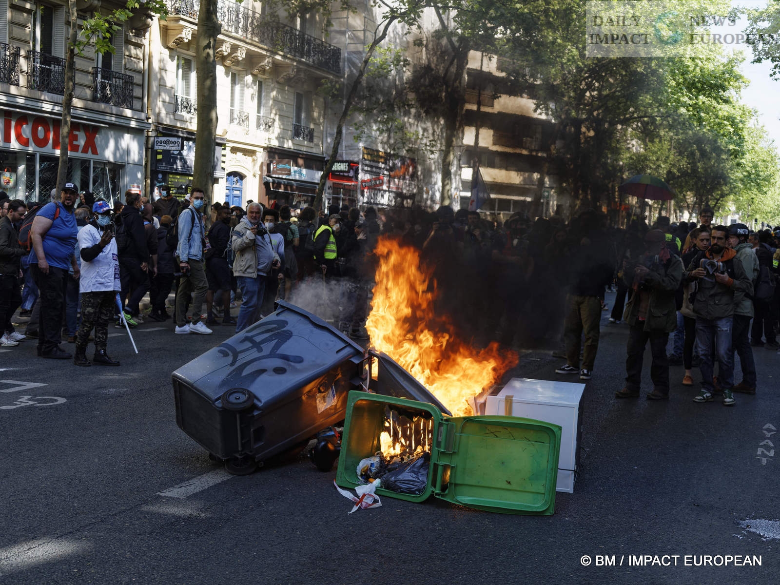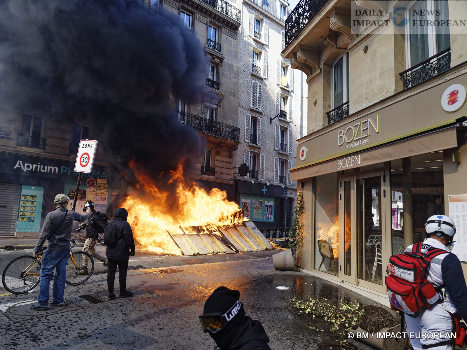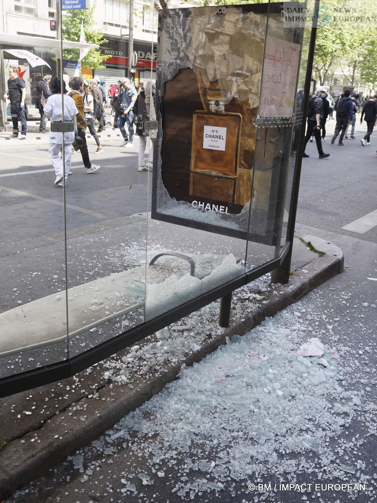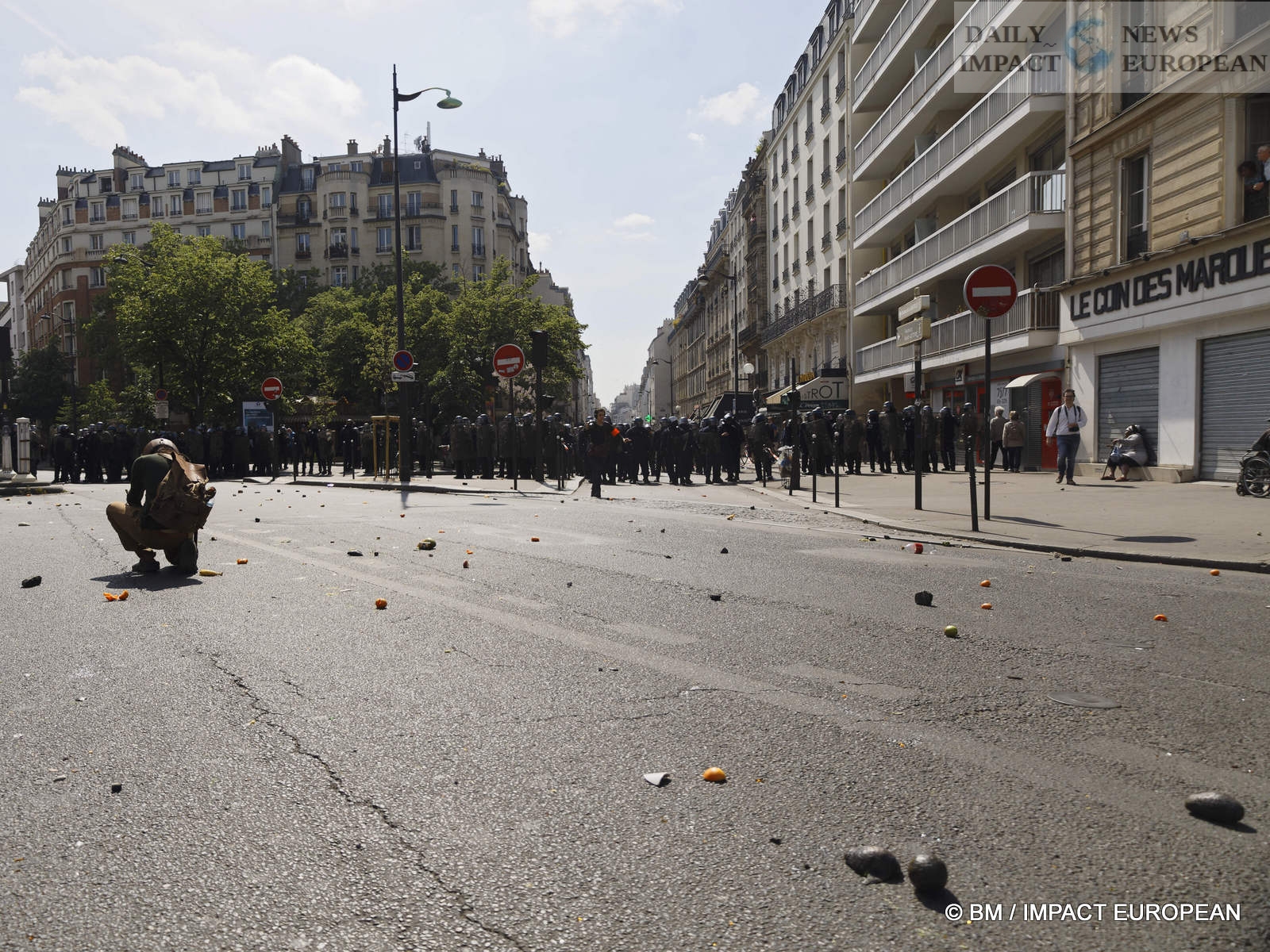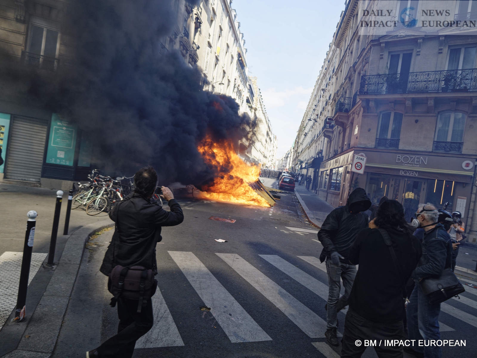The violence was mainly concentrated at the front of the procession. Several dozen black-blocks (thugs) methodically targeted symbols of capitalism: « real estate agencies, banks or fast food chains like McDonald’s. An organic store was looted. Some billboards or garbage cans were burned all the way. »