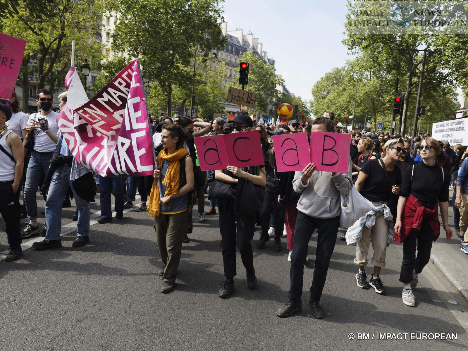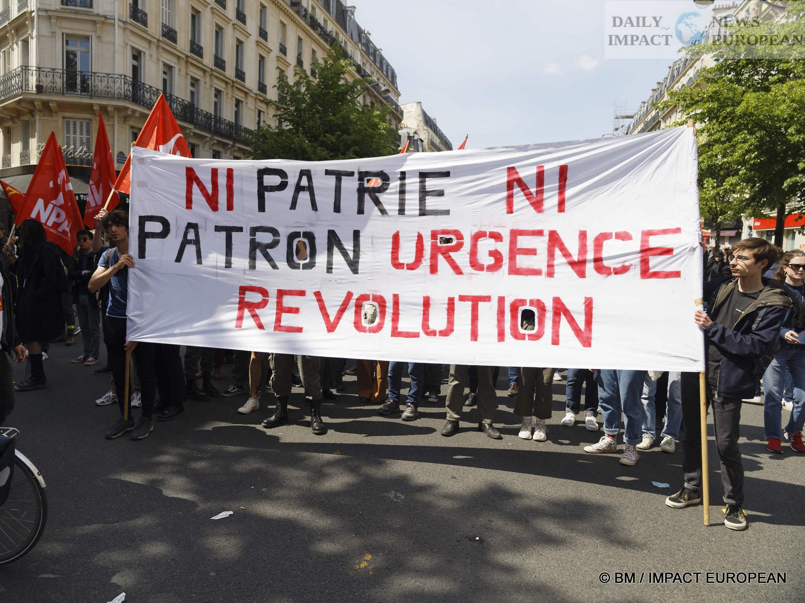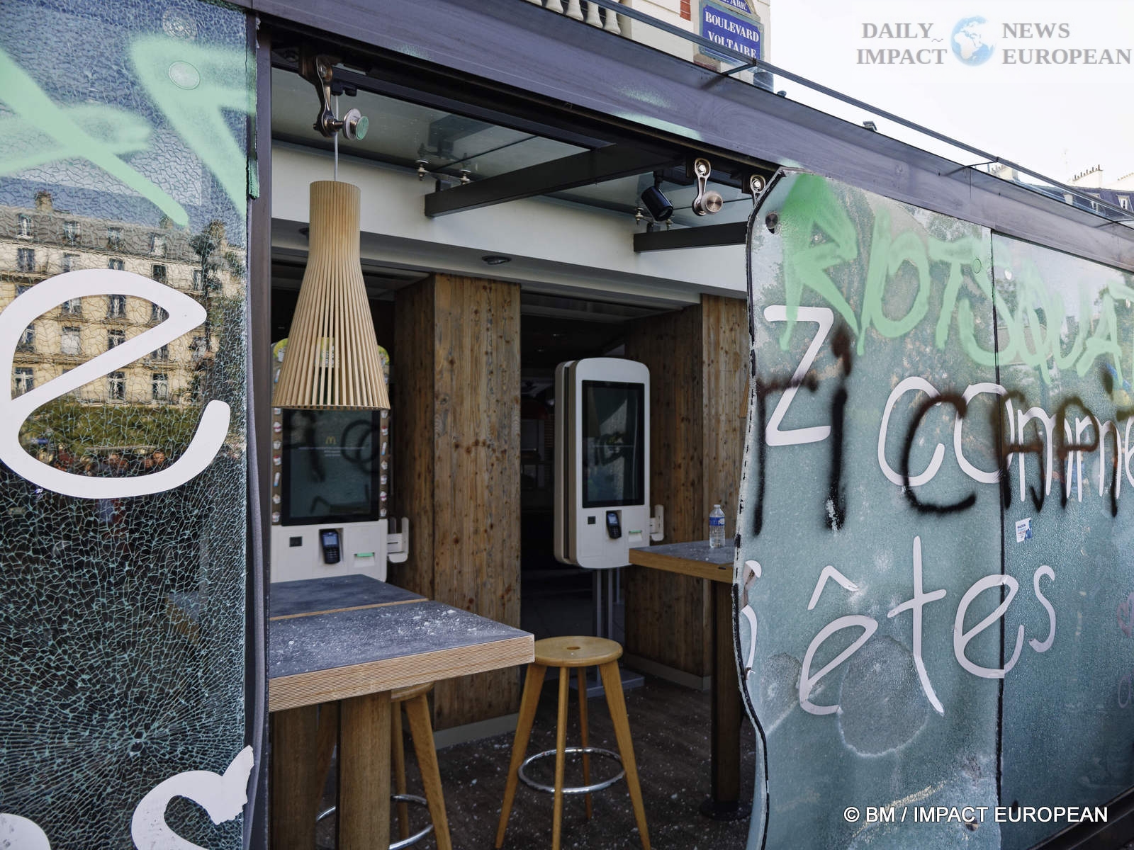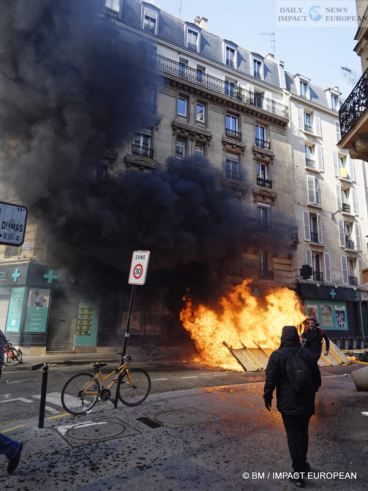 The violence was mainly concentrated at the front of the procession. Several dozen black-blocks (thugs) methodically targeted symbols of capitalism: « real estate agencies, banks or fast food chains like McDonald’s. An organic store was looted. Some billboards or garbage cans were burned all the way. »