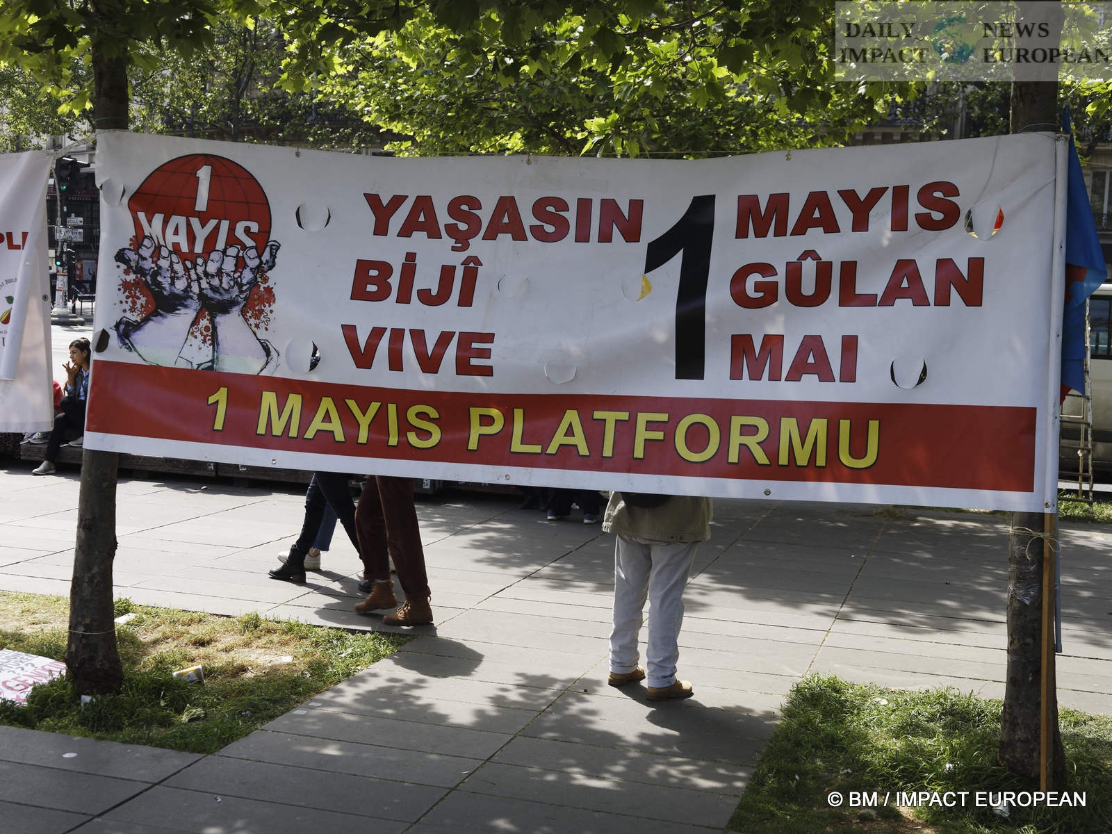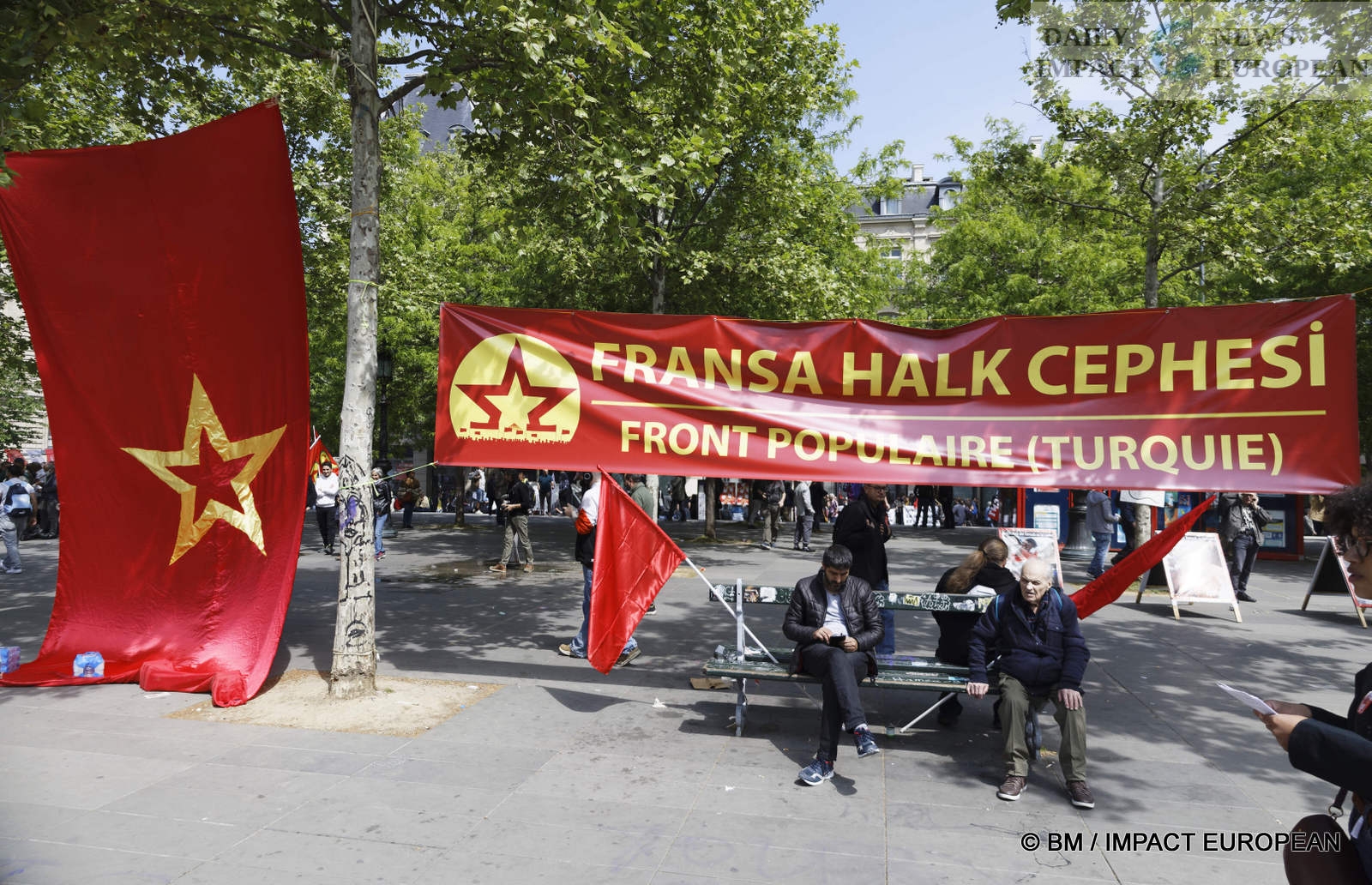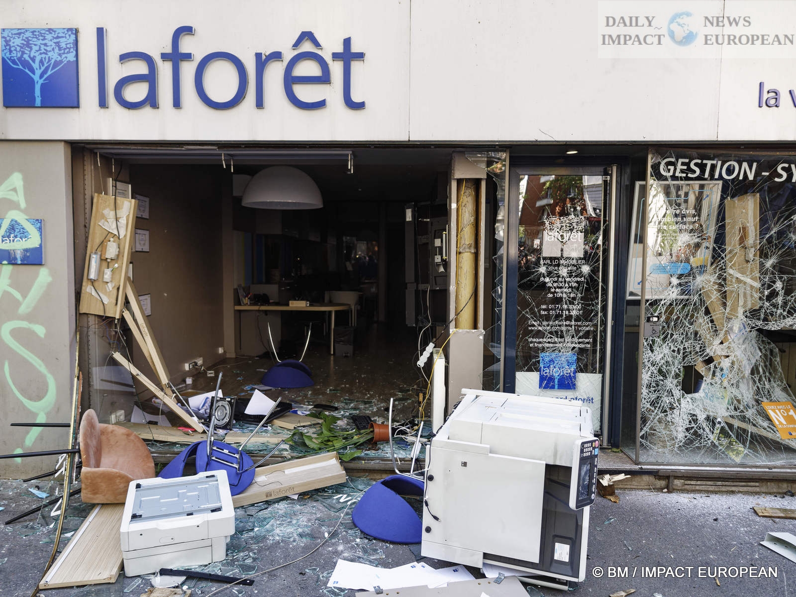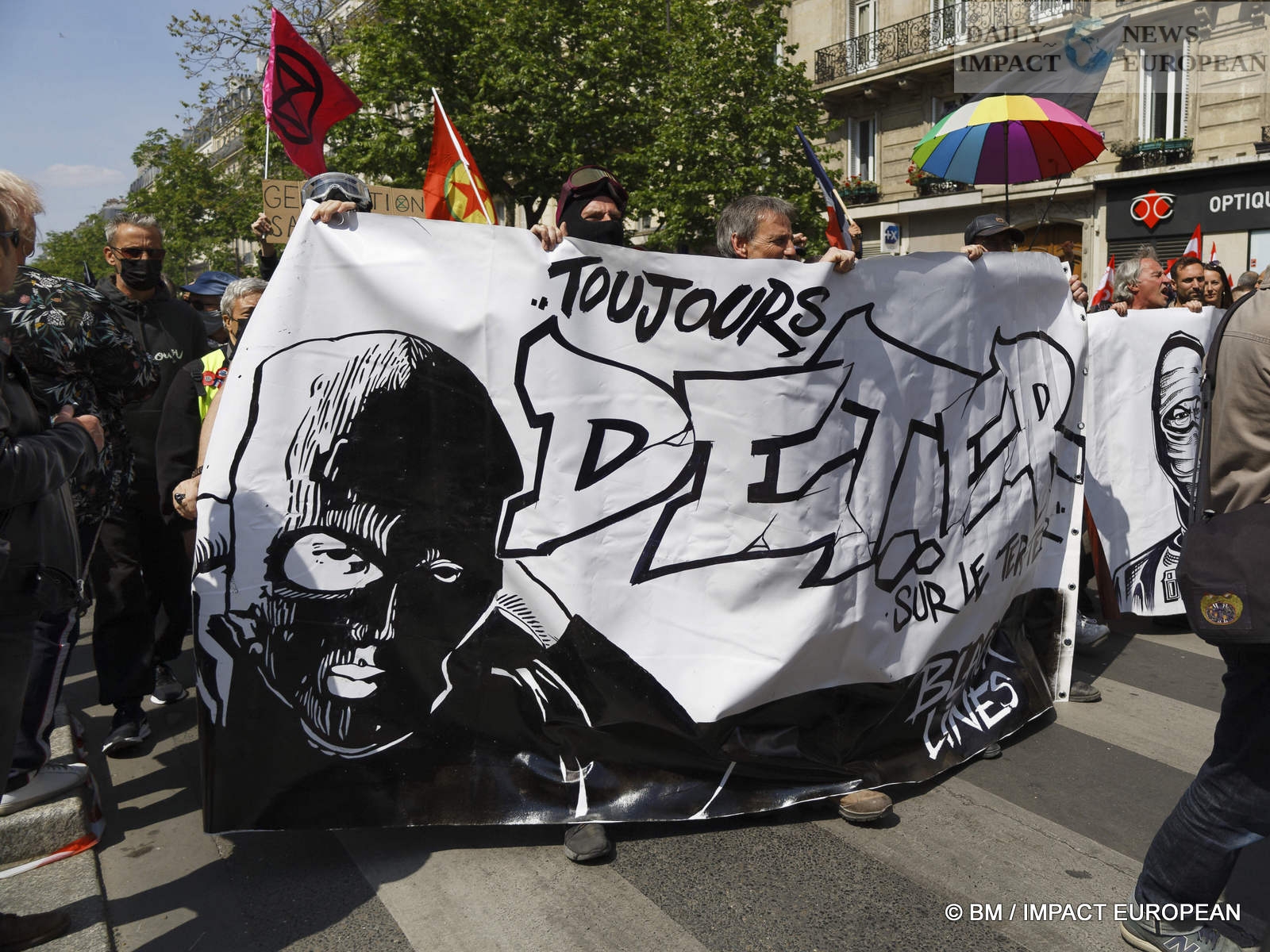 The violence was mainly concentrated at the front of the procession. Several dozen black-blocks (thugs) methodically targeted symbols of capitalism: « real estate agencies, banks or fast food chains like McDonald’s. An organic store was looted. Some billboards or garbage cans were burned all the way. »
