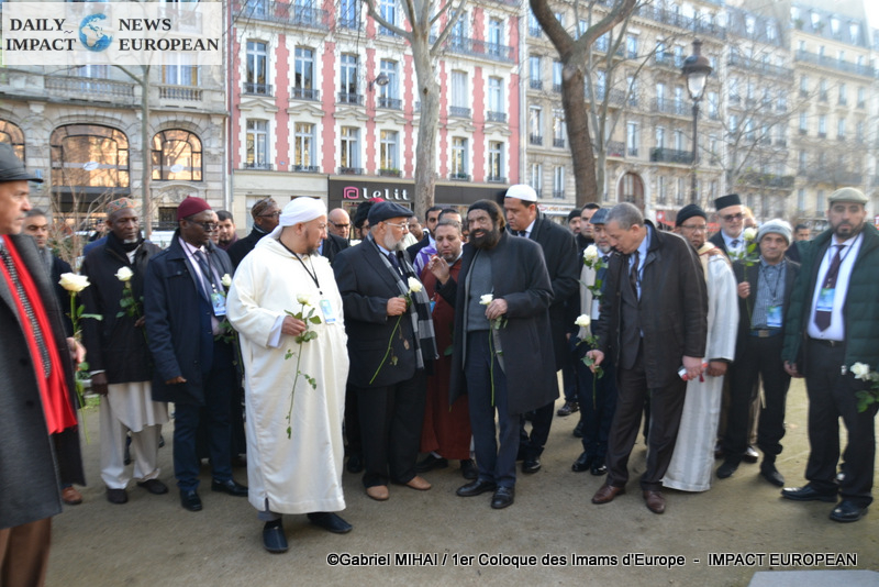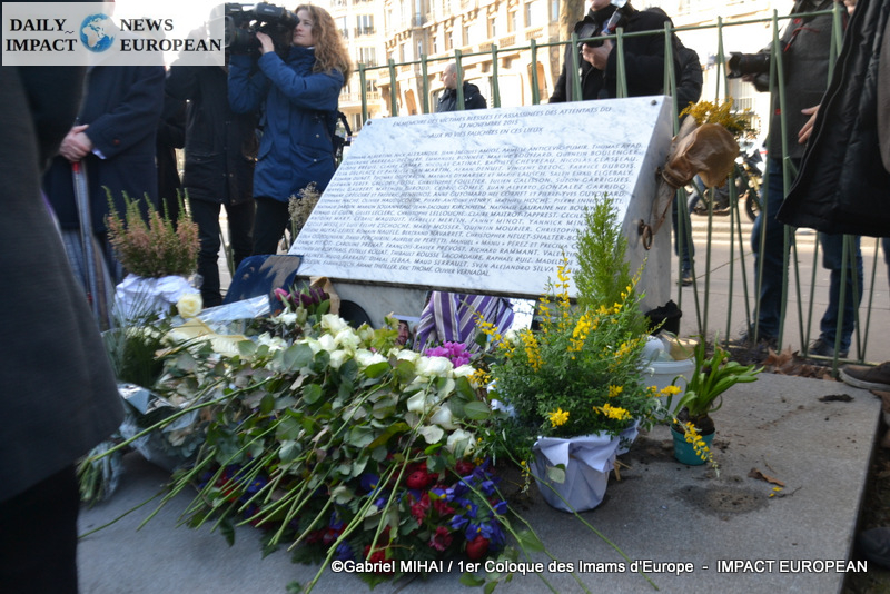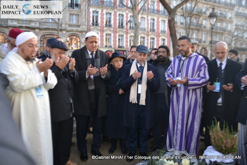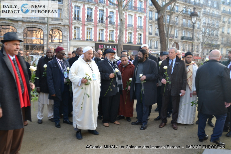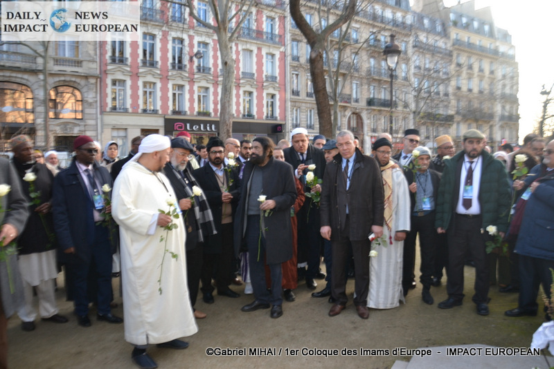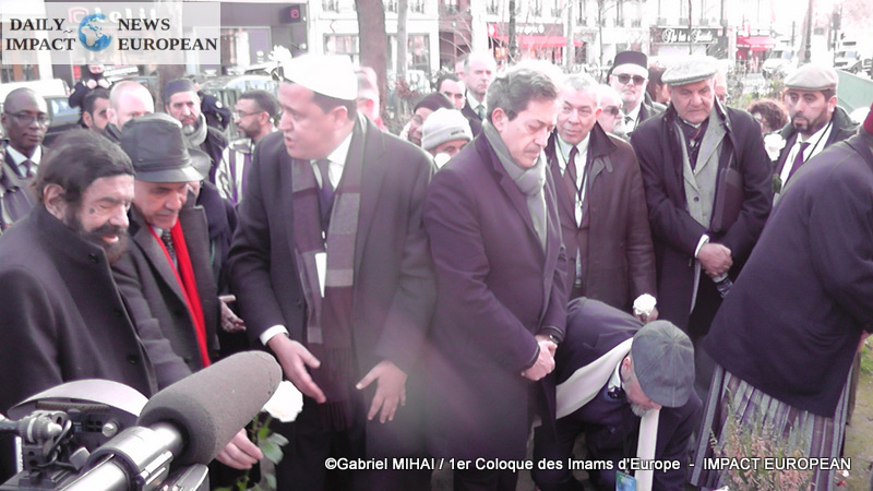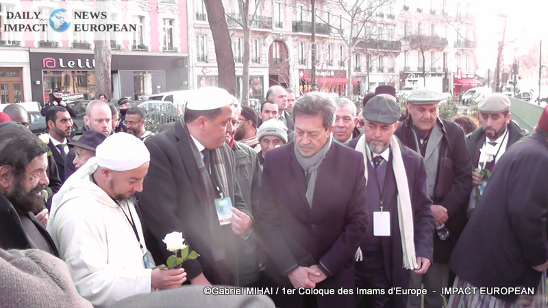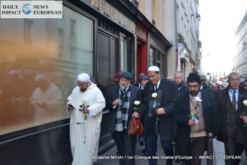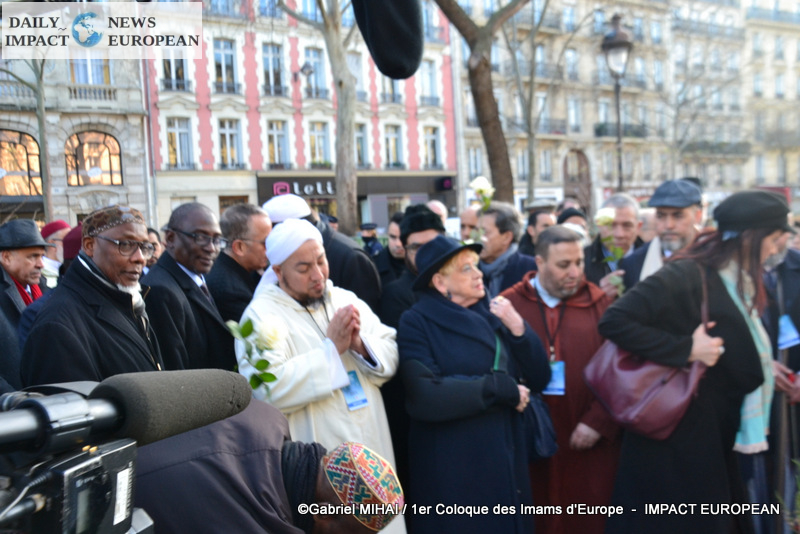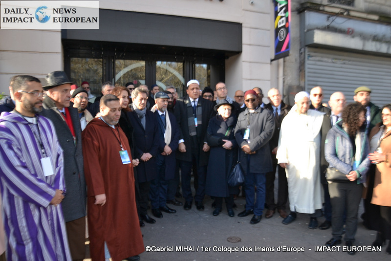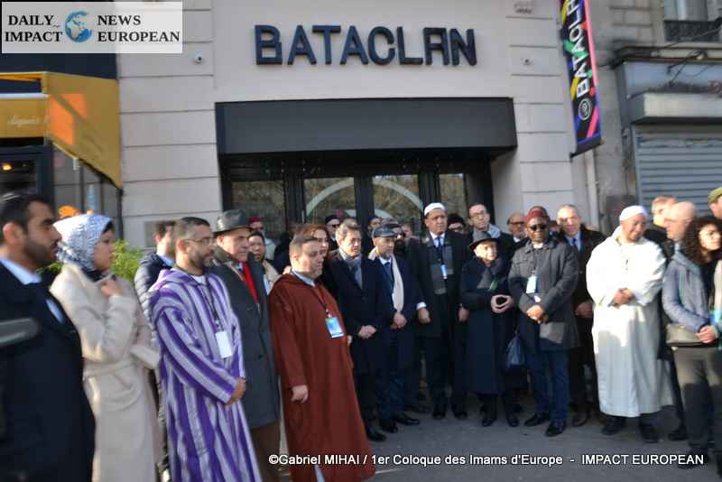 The imams of Europe held a moment of silence in tribute to the victims of the November 2015 attack in front of the Bataclan, in the presence of many families bereaved by the attacks that struck France, the mayor of the 11 arrondissement of Paris, François Vauglin, and the Deputy Mayor of Paris, Patrick Bloche.