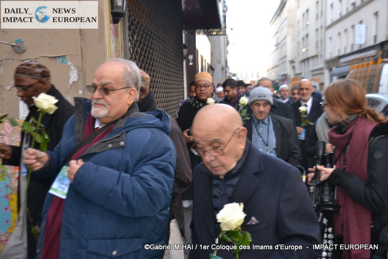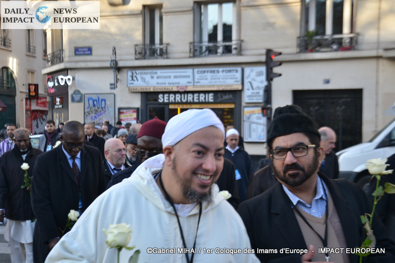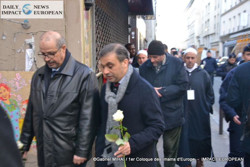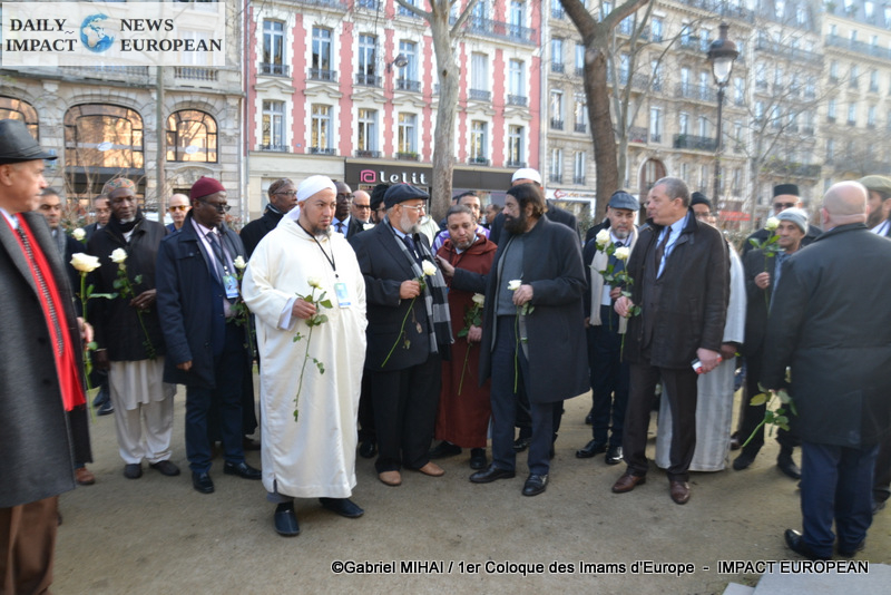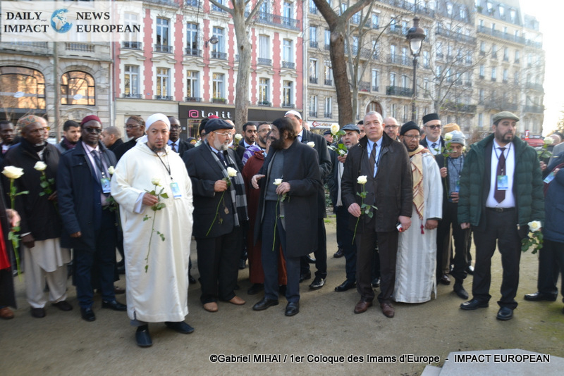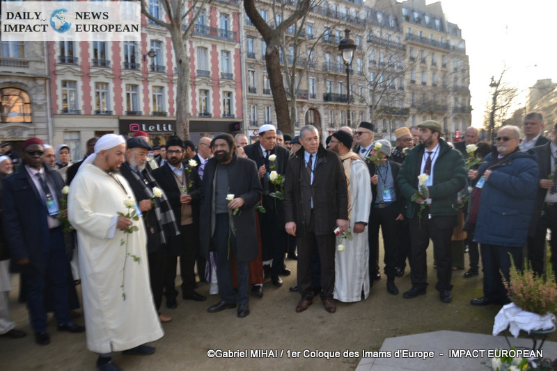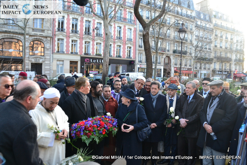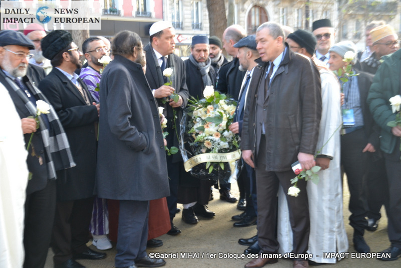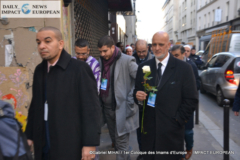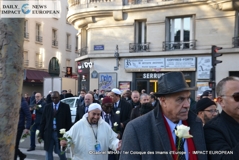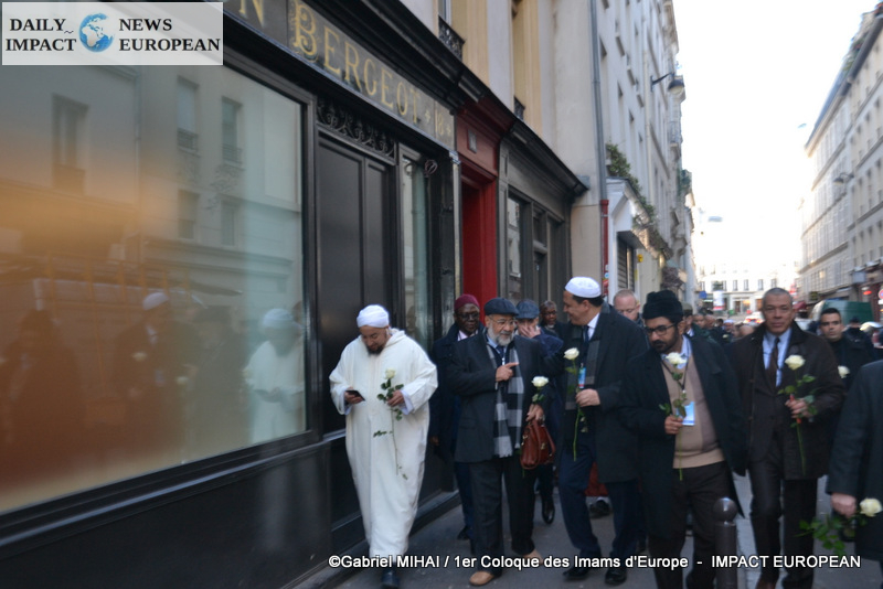 The imams of Europe held a moment of silence in tribute to the victims of the November 2015 attack in front of the Bataclan, in the presence of many families bereaved by the attacks that struck France, the mayor of the 11 arrondissement of Paris, François Vauglin, and the Deputy Mayor of Paris, Patrick Bloche.