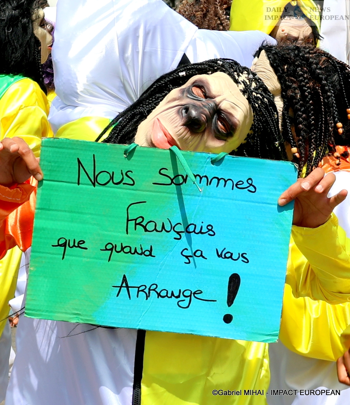 In addition, it was noted that fewer children were present in this parade, compared to previous years, for reasons of security. However, the Malaka Sister’s group, chaired by Guadeloupean choreographer Angel Croump, included children, the youngest of whom, Zenaya, was 3 years old.