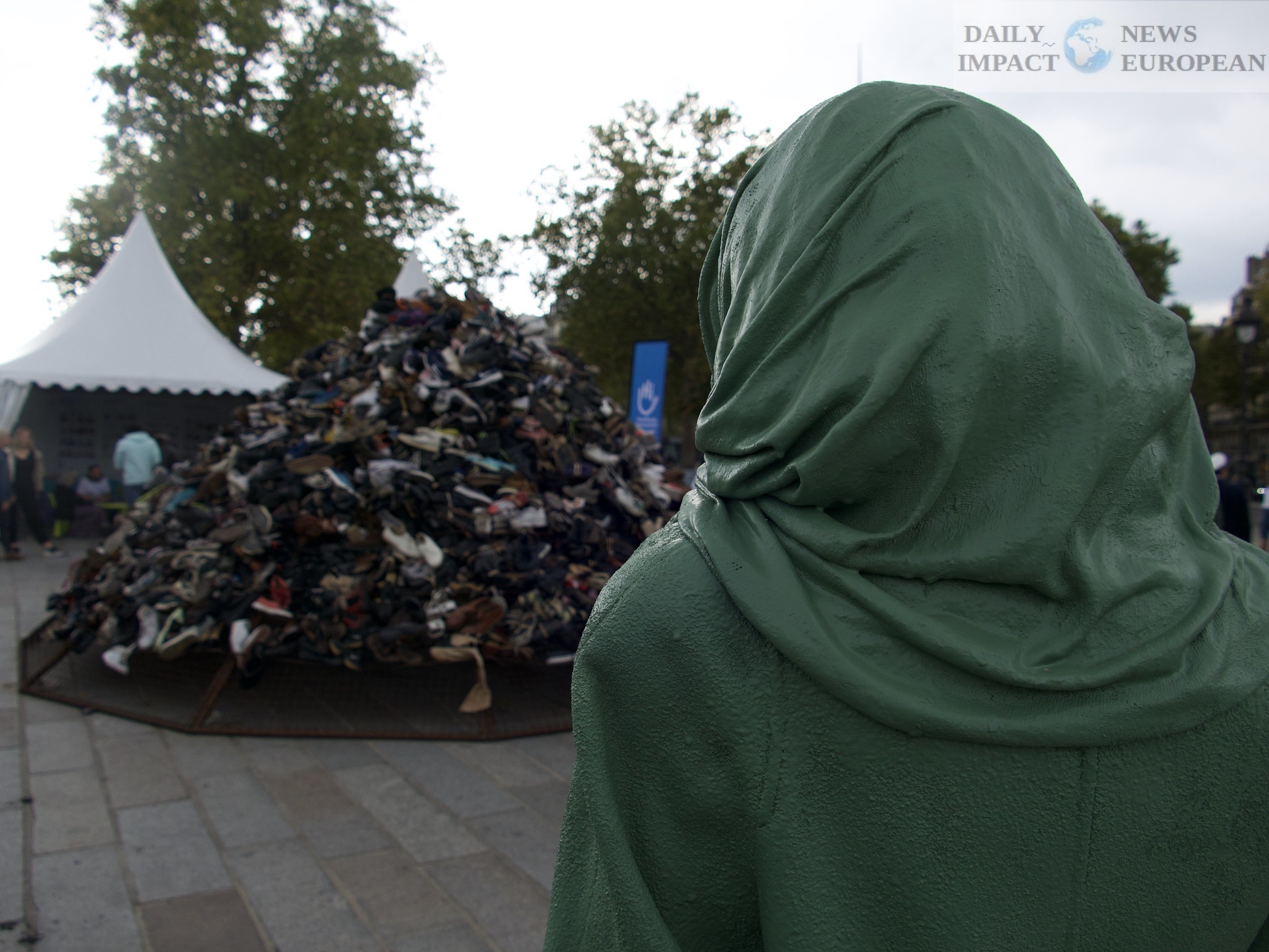 « Every 20 minutes, in the world, a civilian is wounded or killed by a bomb or an explosive weapon targeting an urban area ». Handicap International has been mobilizing for 28 years, almost three decades around this event, to help the victims of wars. As every year, the public was invited to drop off shoes forming a pyramid, a symbol of all the mutilated victims.