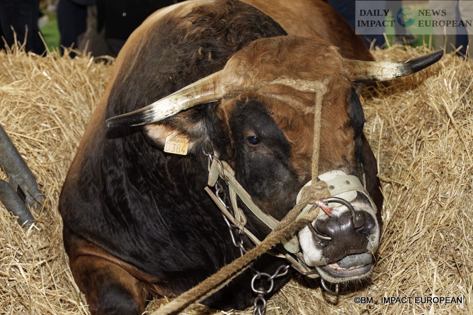Each year, the muse cow honors an animal, a product and a breeder. This year, it’s Ovalie, a 5-year-old Salers cow whose owners are Marine and Michel Van Simmertier. She was born in 2018 in Cézallier, on the borders of Cantal and Puy de Dôme, in Lesparot in the town of St Alvre at 1,100 meters above sea level.
