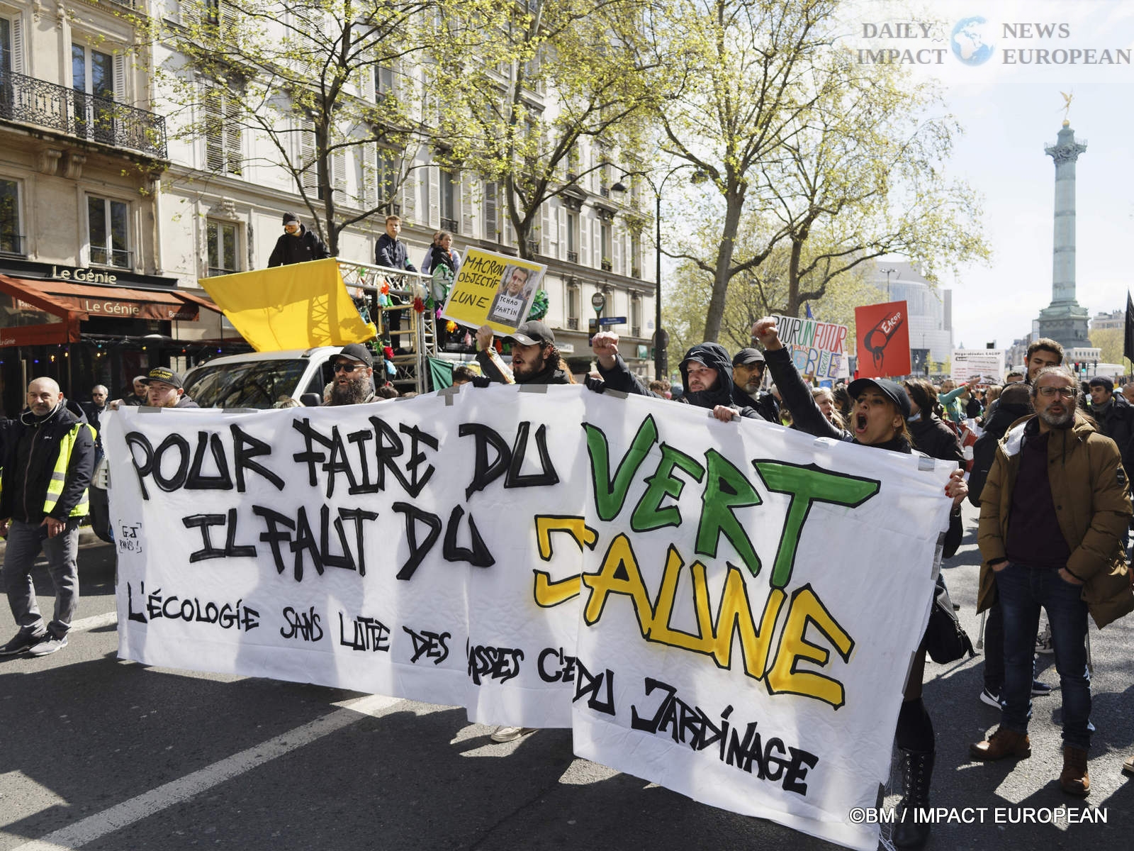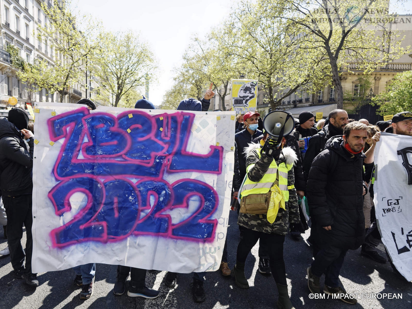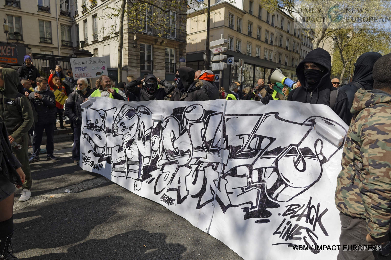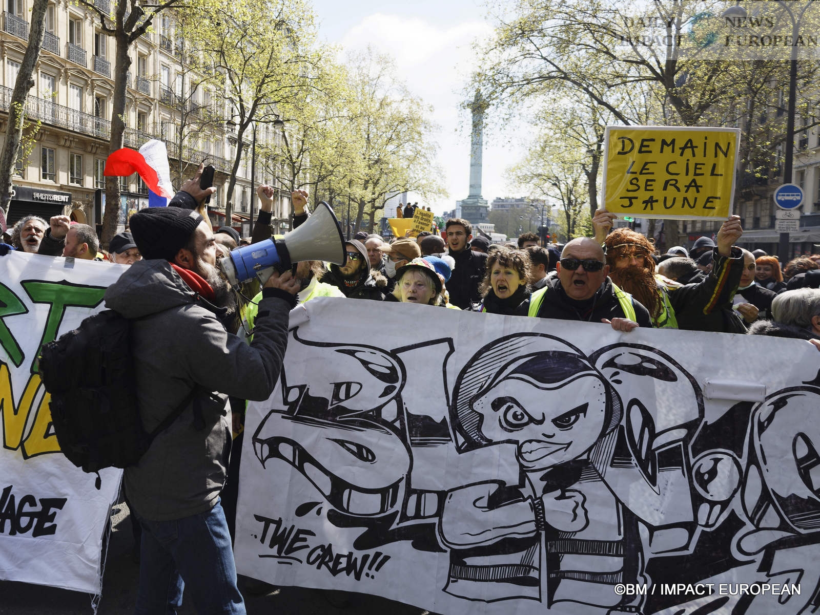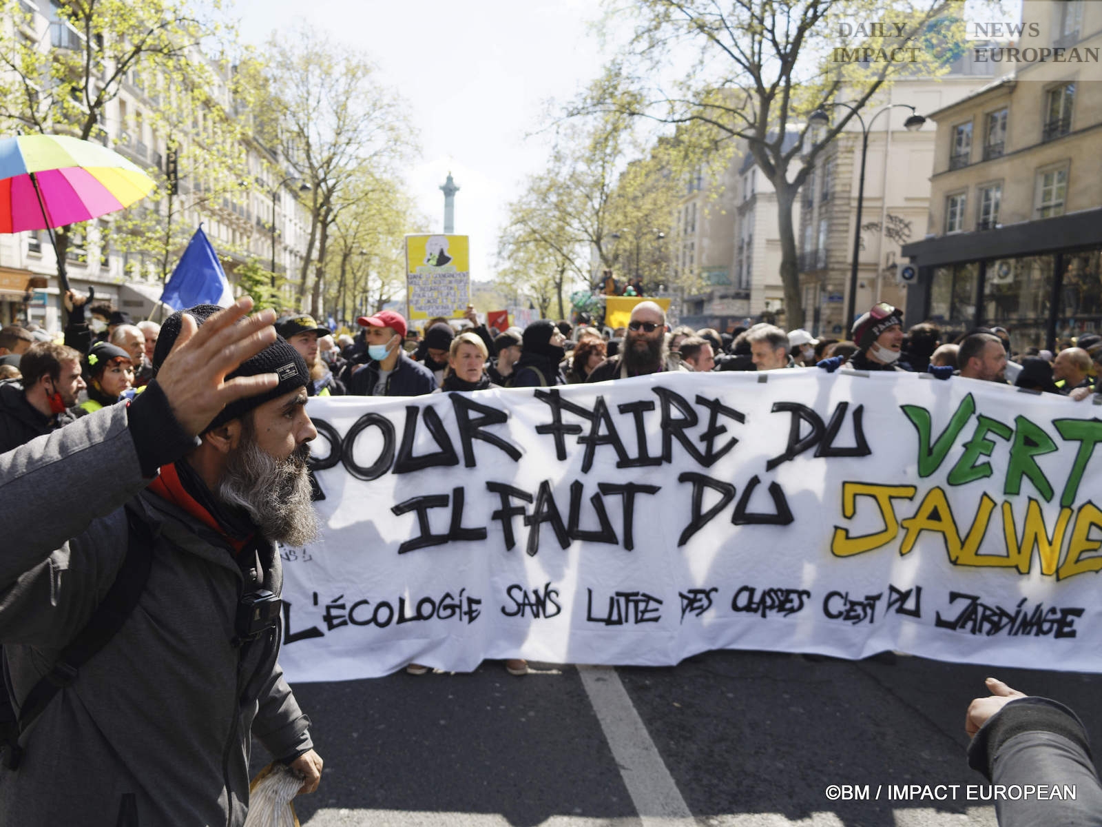 In Paris, 5,600 demonstrators according to the police or 35,000 according to the organizers beat the pavement. The procession left the Place de la Bastille at 2 p.m. in the direction of the Place de la République where interventions and a concert were organized. The « Yellow Vests » were at the head of the procession.