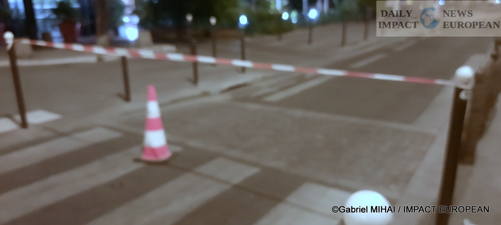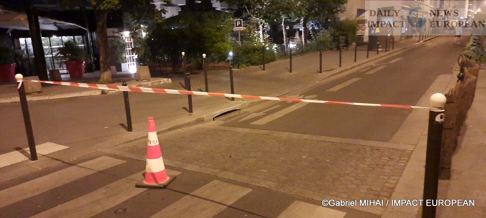 Many chairs were visible on the sidewalk in front of the bar and a security perimeter had been set up by the police.