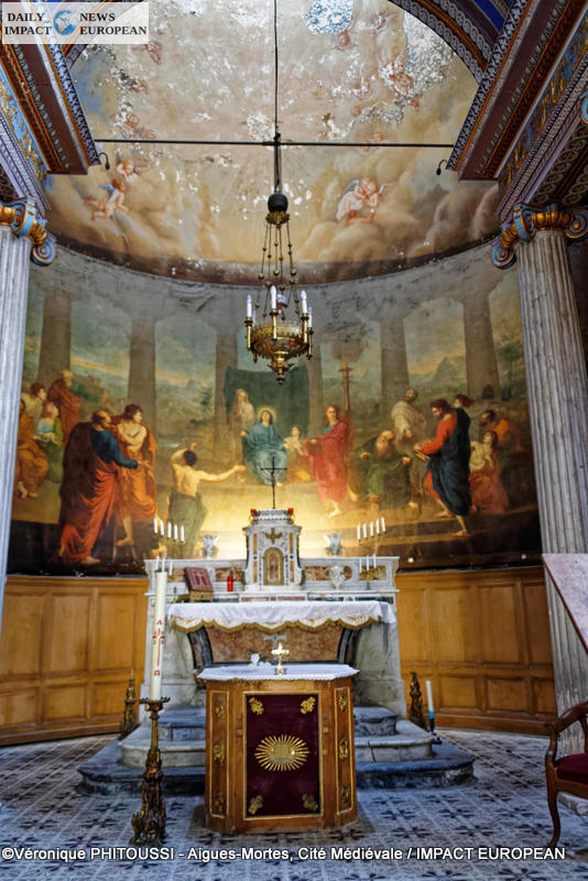 The Chapel of the White Penitents of Aigues-Mortes, is located at the corner of the rue de la République and the rue Louis-Blanc, it belongs to the brotherhood of the White Penitents. The Chapel of the White Penitents was built in the 17th century. The brotherhood of the White Penitents was founded in 1625 by dissidents of the Gray Penitents. The chapel was certainly built at this time (date 1668 on the portal). During the Revolution, the Chapel served as the seat of the Sans Culottes and was stripped of its furniture. It was bought in 1796, used as a parish church and then taken over by the Penitents who rebuilt the choir. In 1818, the neoclassical expansion was entrusted to engineer Durand.
