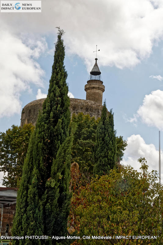 The Tour de Constance, was erected in 1242 by Saint Louis on the former site of the Matafère tower, built by Charlemagne around 790, to house the king’s garrison. The work was completed in 1254. Its diameter is 22 meters, its height at the top of the lantern is 33 or 40 meters according to various sources … The thickness of the walls at the base is 6 meters.