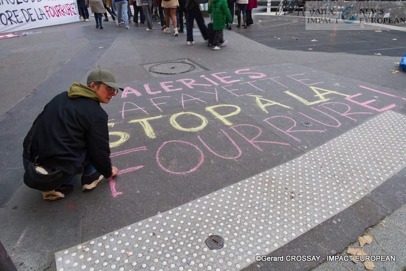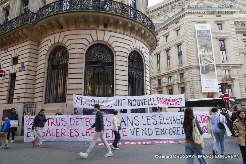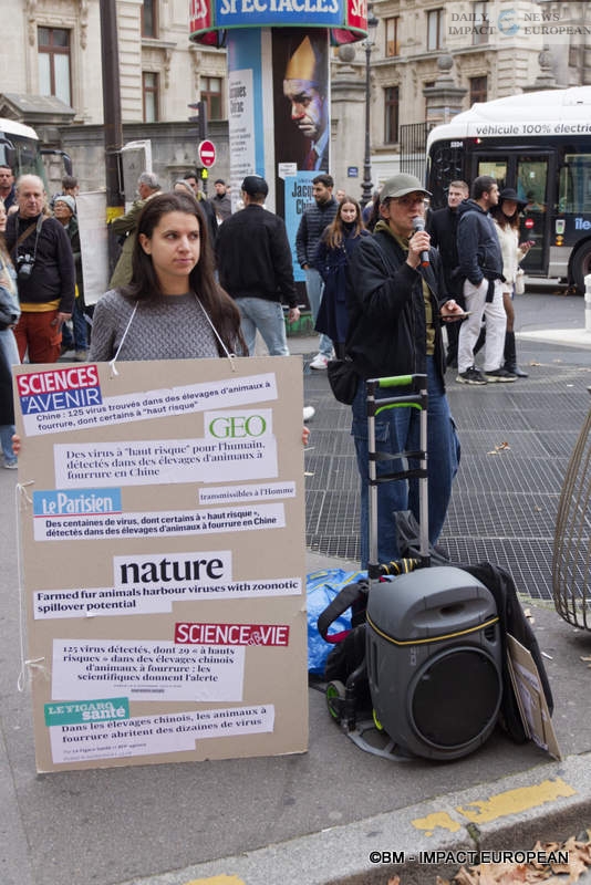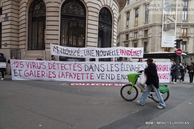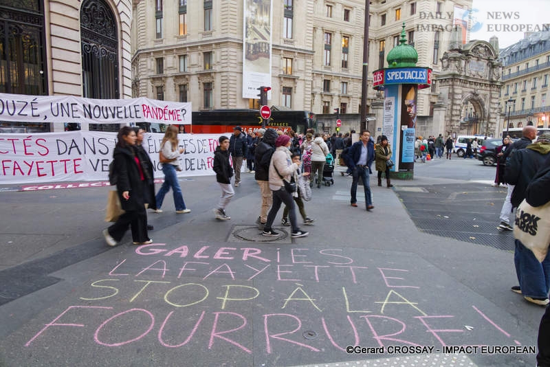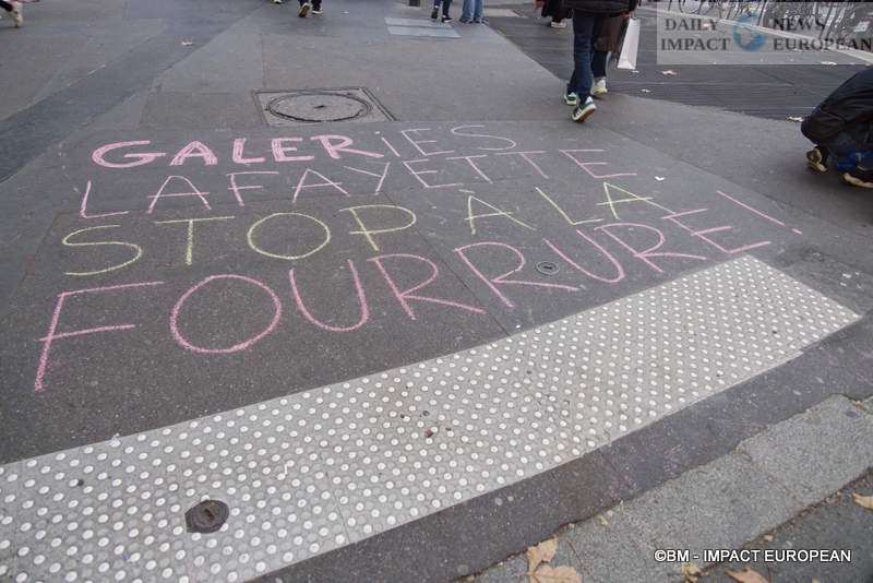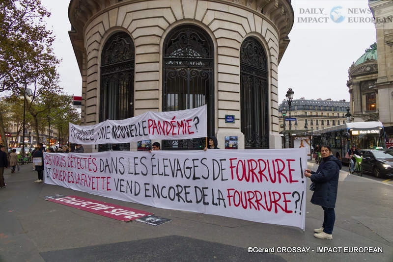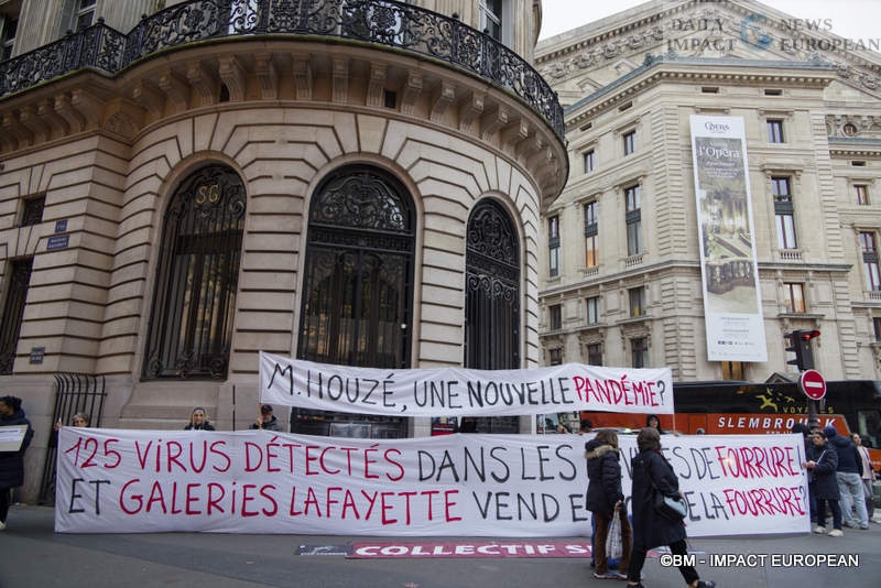 The Collective’s activists demonstrated on November 2 in front of the Galeries Lafayette in Paris to demand the banning of animal fur in this store that continues to sell fur products despite its values displayed in its public communications (ecology and progressivism).