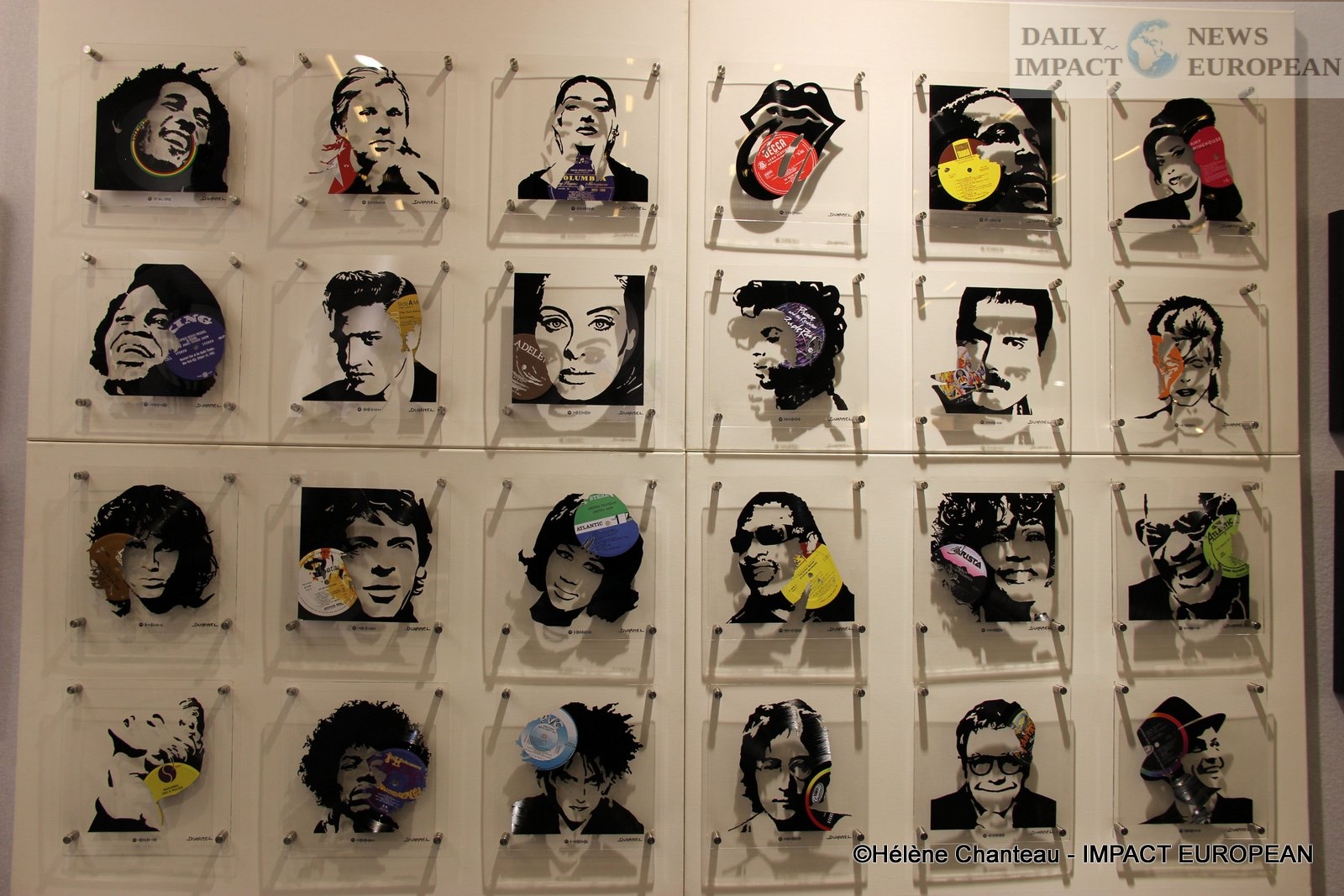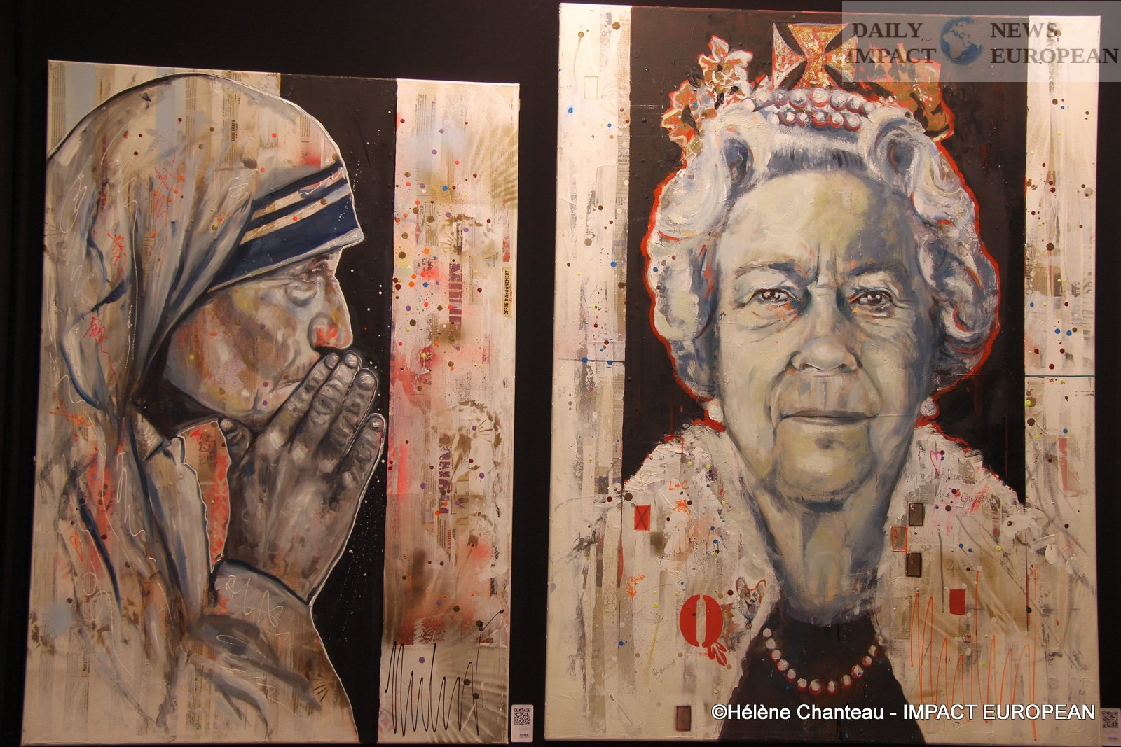 Caroline Hulin, for her part, is inspired by the Street art and Pop art trends. To create her portraits, she uses, among other things, acrylic paint and in particular creates collages of newspapers or wallpapers. The artist particularly enjoys making paintings highlighting strong personalities who marked their time. She attaches great importance to the gaze of each person painted to express what characterizes them.