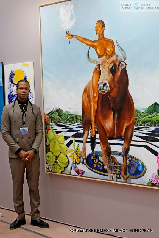 For this return to the Grand Palais, Mornalien Luidgi Deloumeaux had decided to create an imposing canvas, also praising the assets and riches of the Guadeloupe archipelago.