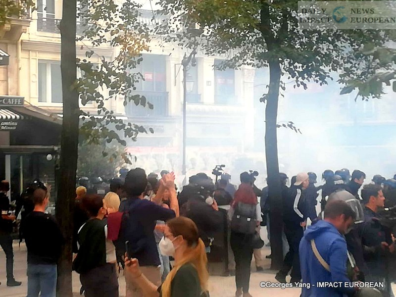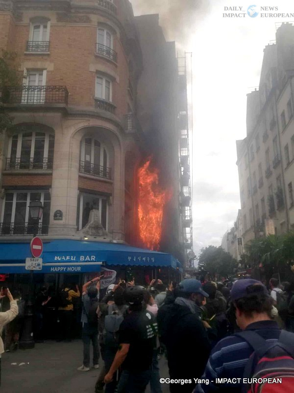 The day was marked by a fire at a brasserie in the Les Halles district of Paris, amid clashes between protesters and police forces. A thick column of smoke rose from the building façade before firefighters managed to bring the blaze under control.