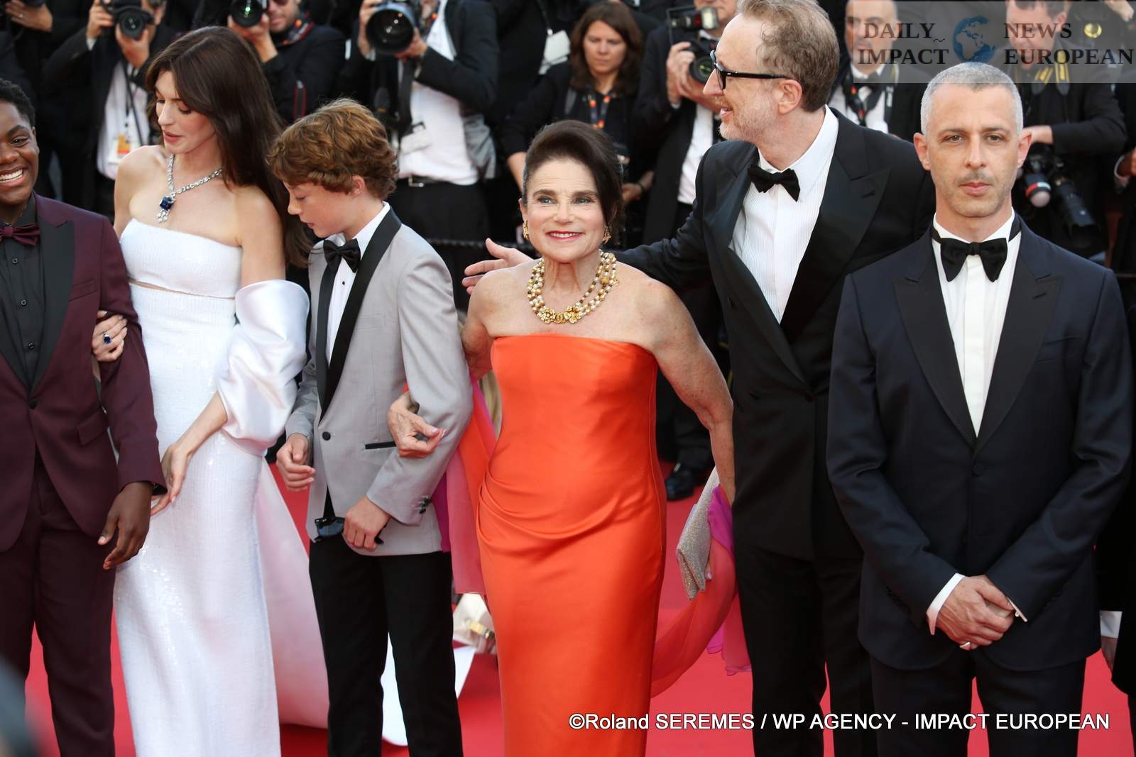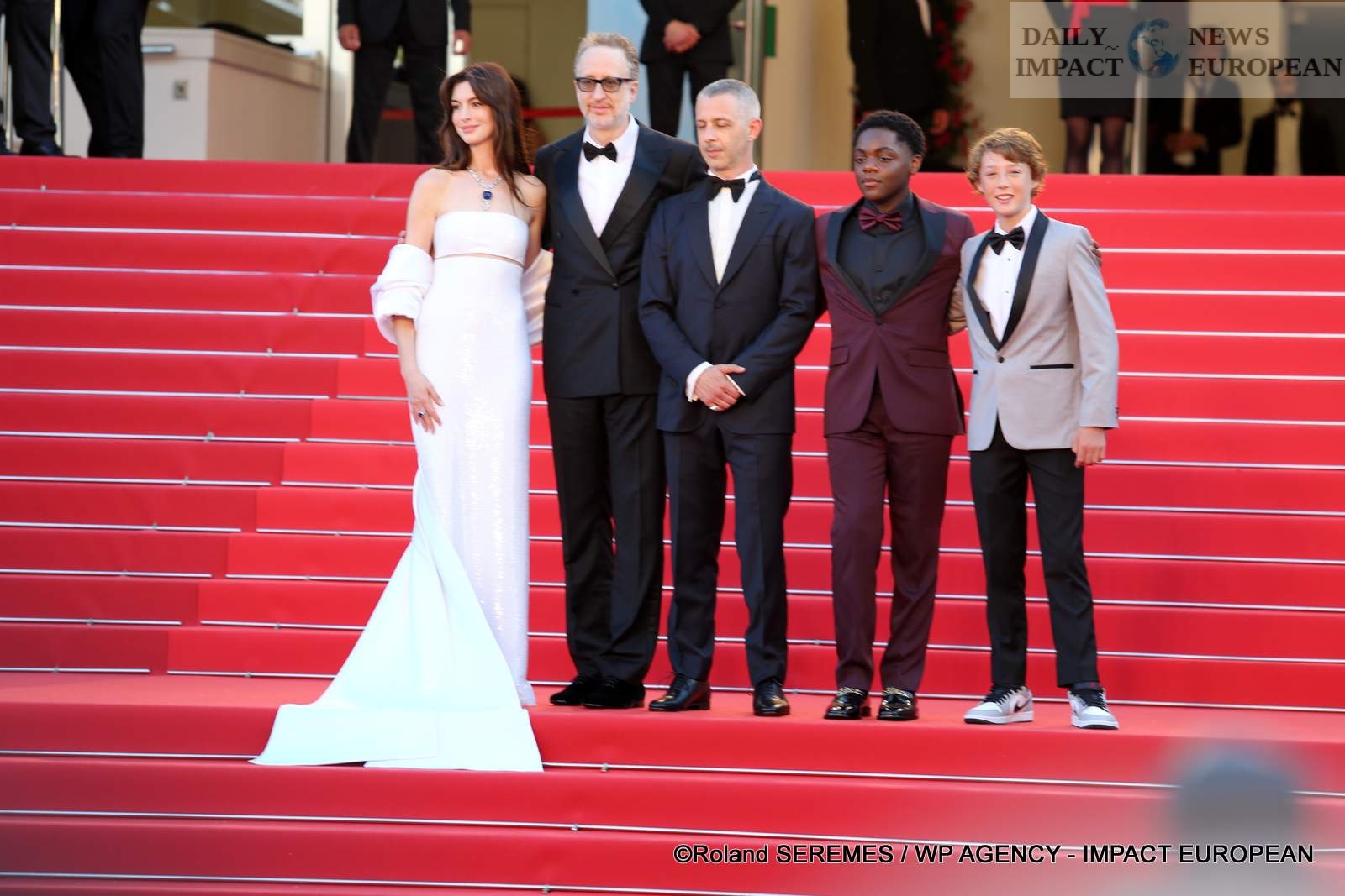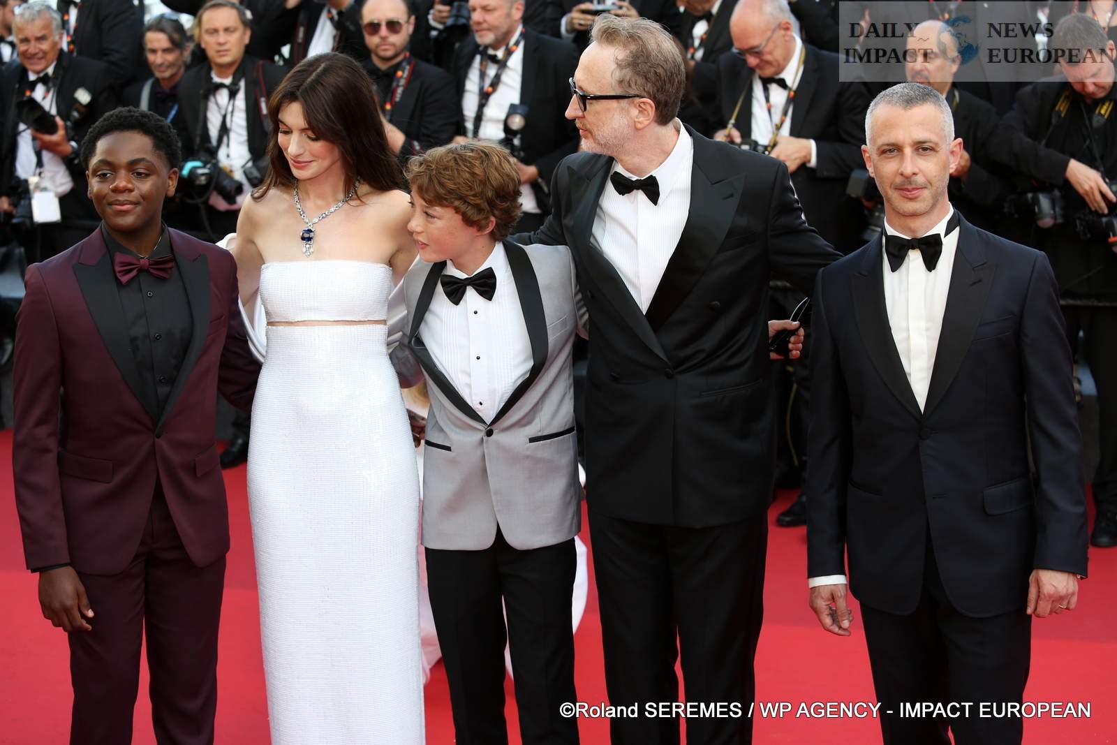 Anne Hathaway offered herself a sparkling appearance, in a bra and sequined skirt, in the arms of two children: Banks Repeta and Jaylin Webb, also actors in the film. The actress then entered the auditorium, arm in arm, with Jeremy Strong. Before the team attends the screening of the feature film side by side, like a family.