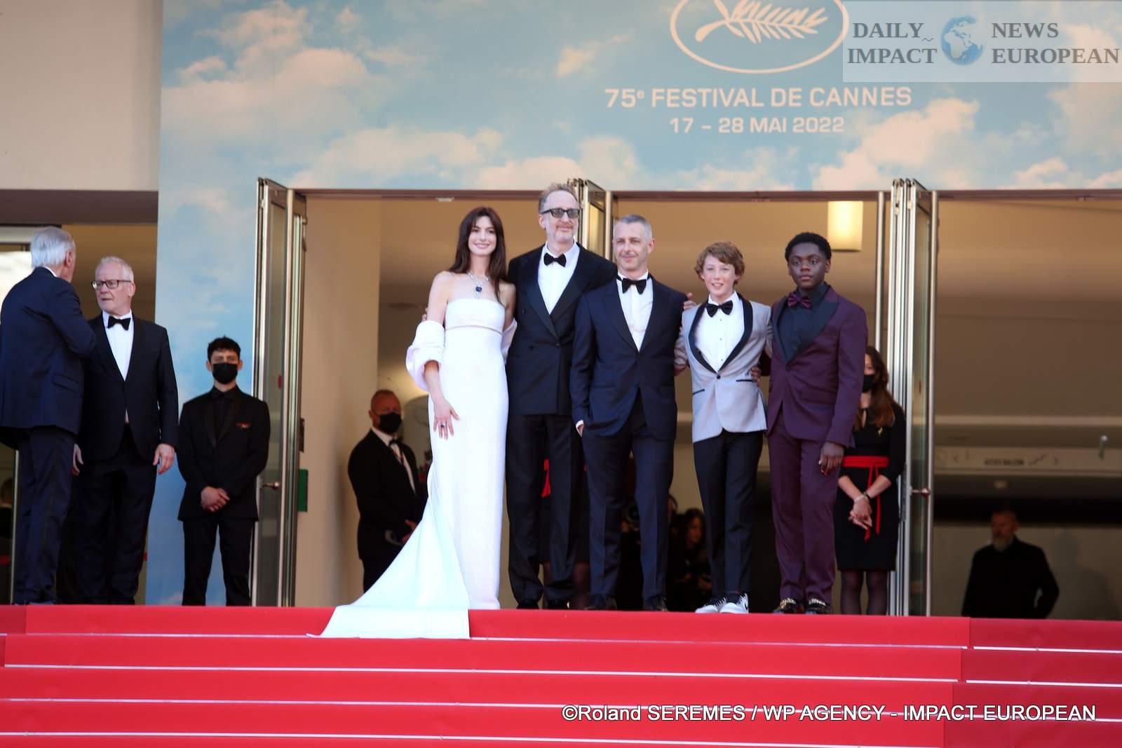 Anne Hathaway and Jeremy Strong climbed the steps of the 2022 Cannes Film Festival for the screening of Armageddon Time, by James Gray.