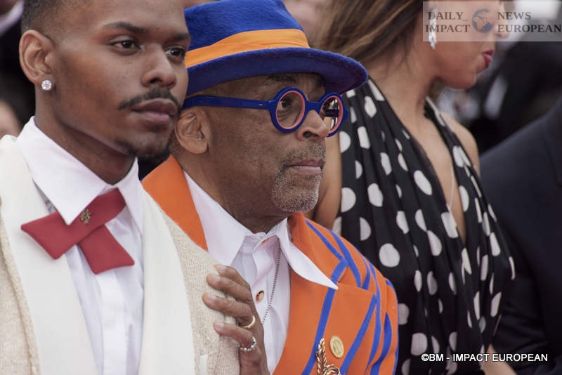The male trio was surrounded by the rest of the film’s cast. The filmmaker wore an orange and blue striped suit, a nod to the colors of the New York Knicks, Lee’s favorite basketball team, which recently earned a spot in the NBA Finals.