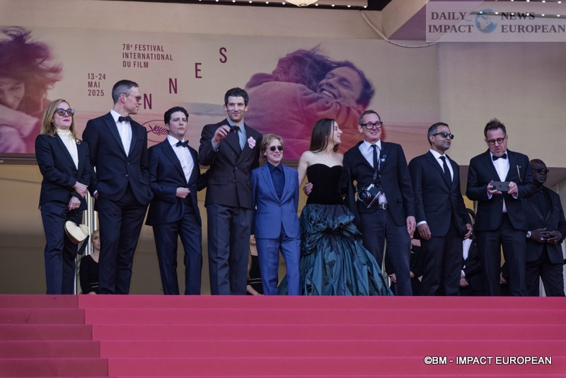 The cast includes Amy Roth, Neil Kopp, John Magaro, Josh O’Connor, Kelly Reichardt, Alana Haim, Anish Savjani, and Christopher Blauvelt, on the red carpet of the 78th Cannes Film Festival.
