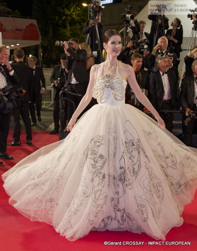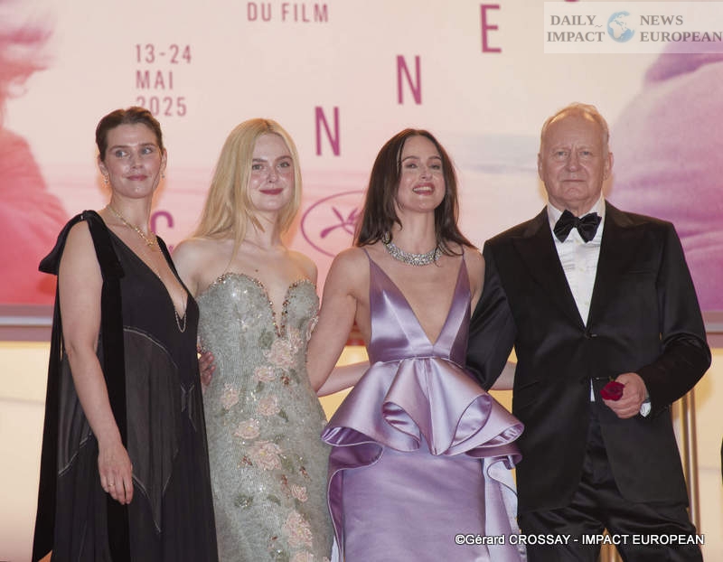 This Wednesday, May 21st, during the red carpet for the feature film « Sentimental Value, » actress Elle Fanning caused a sensation at the Palais des Festivals. The actress walked the steps alongside the cast and crew of the film, including Inga Ibsdotter, Renate Reinsve, Anders Danielsen, and Stellan Skarsgård.