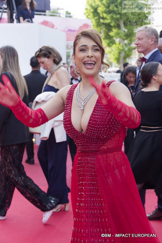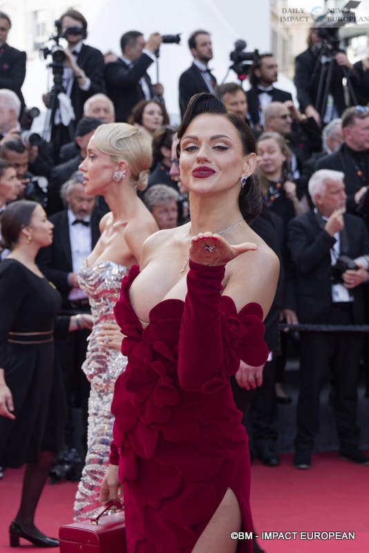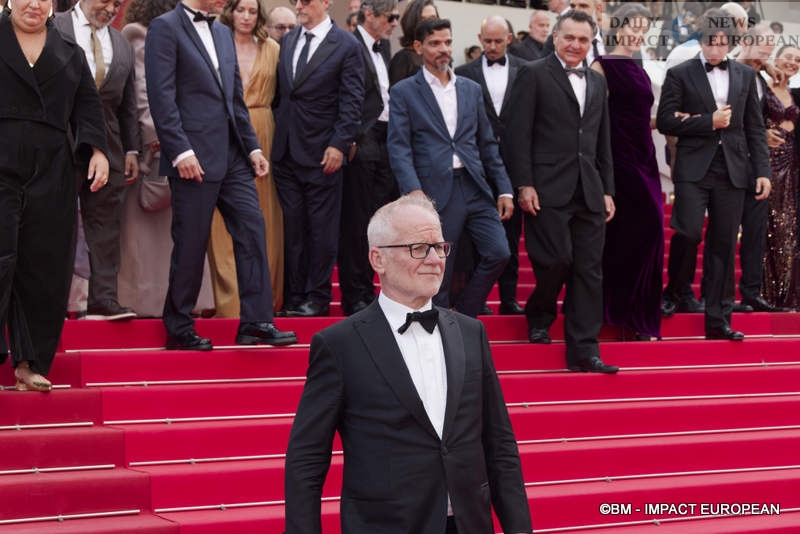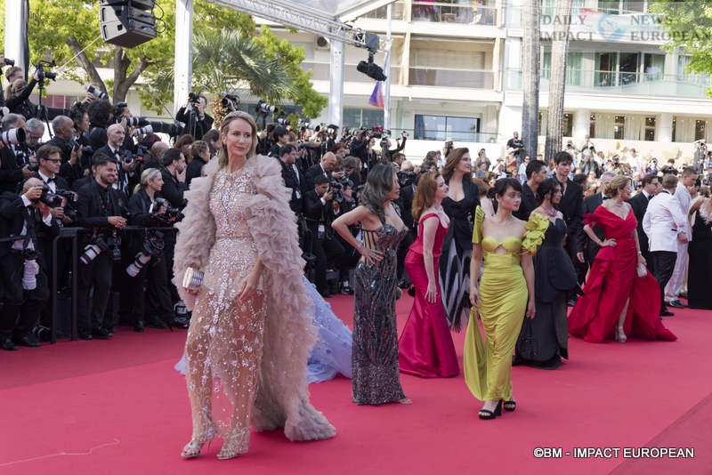 The official presentation of the film attracted an impressive array of celebrities, starting with the radiant Thalia Besson, daughter of Luc Besson, who lit up the Croisette. Charlotte Le Bon opted for a bold black outfit, oscillating between pure elegance and fashion boldness, while Eva Longoria, a regular at the event, set the camera flashing with her usual glamour. Halle Berry also made a splash in a floral suit, as did Laurent Lafitte, master of ceremonies at the Festival’s opening.