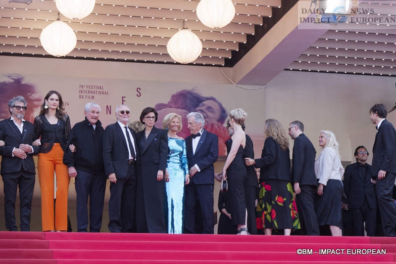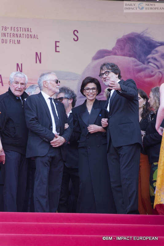 For this red carpet event, French Minister of Culture Rachida Dati was present with a delegation of European filmmakers, including French director Claude Lelouch and French-Greek director Costa-Gavras. She greeted the team of The Phoenician Scheme.