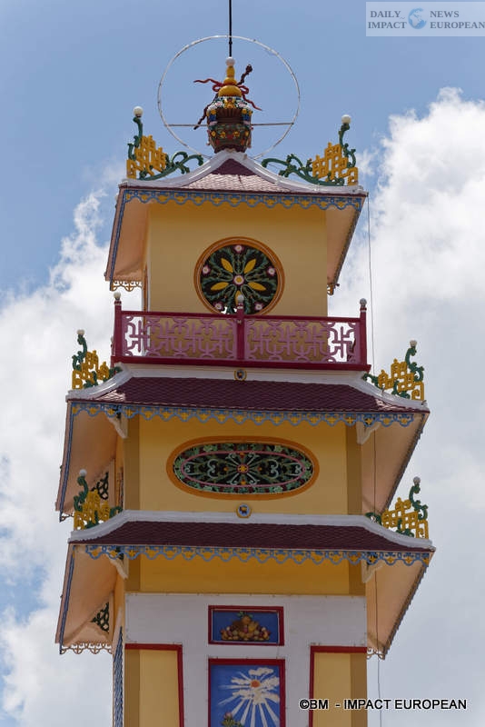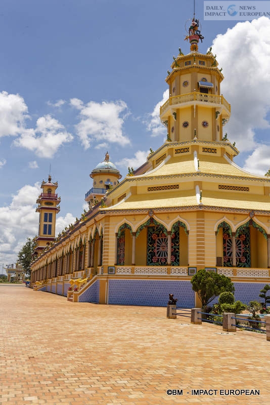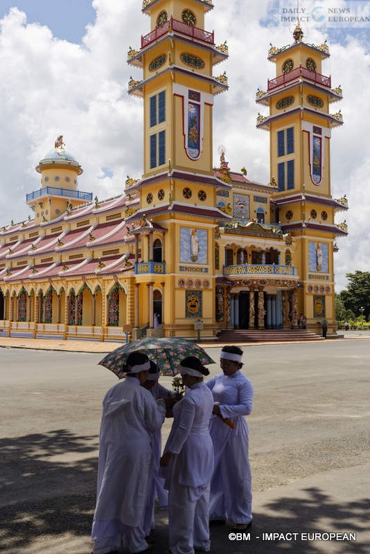 Tay Ninh is the seat of Caodaism, a new religion invented by a Cochin-Chinese official in the 1920s. It is a synthesis between the great religious philosophies of the West and the Far East. It is symbolized by a cathedral-temple located 4 km east of the city. and looks like a mixture of church and pagoda.