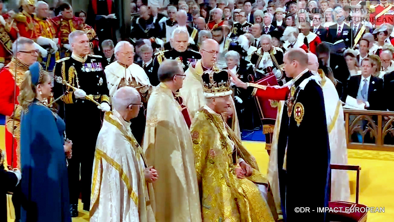« I William, Prince of Wales, pledge my loyalty and faith and truth to you. I will bear them as the trusted man of your life and physical integrity. God help me, » William says before to kiss his father and touch his crown.