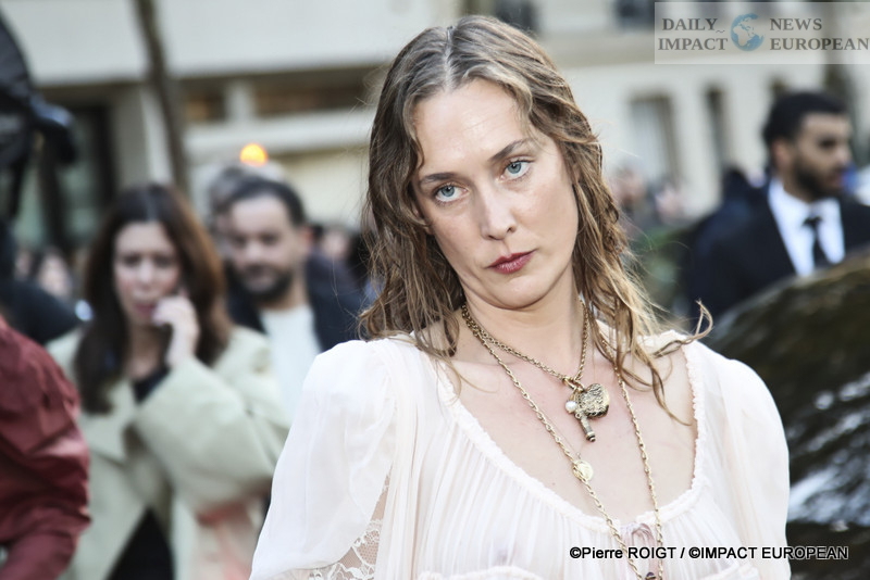 Delicate dresses are paired with oversized coats, while pastel and neutral tones create a soft, luminous atmosphere. Minimalist accessories enhance the elegance without overshadowing the looks.