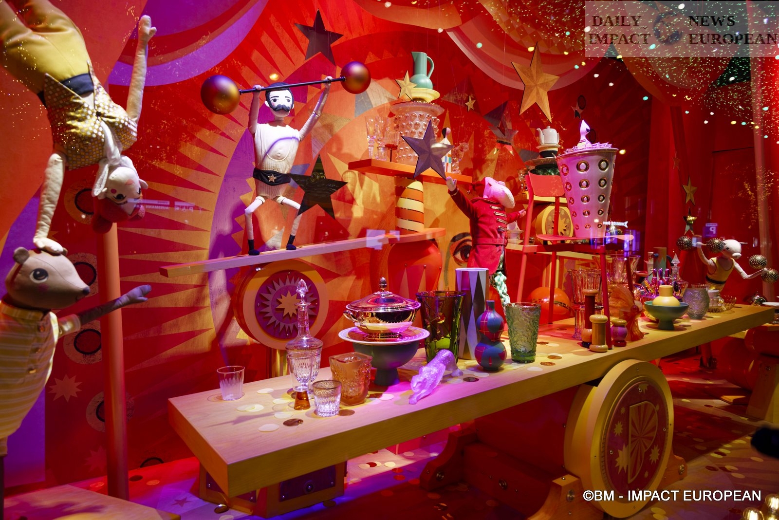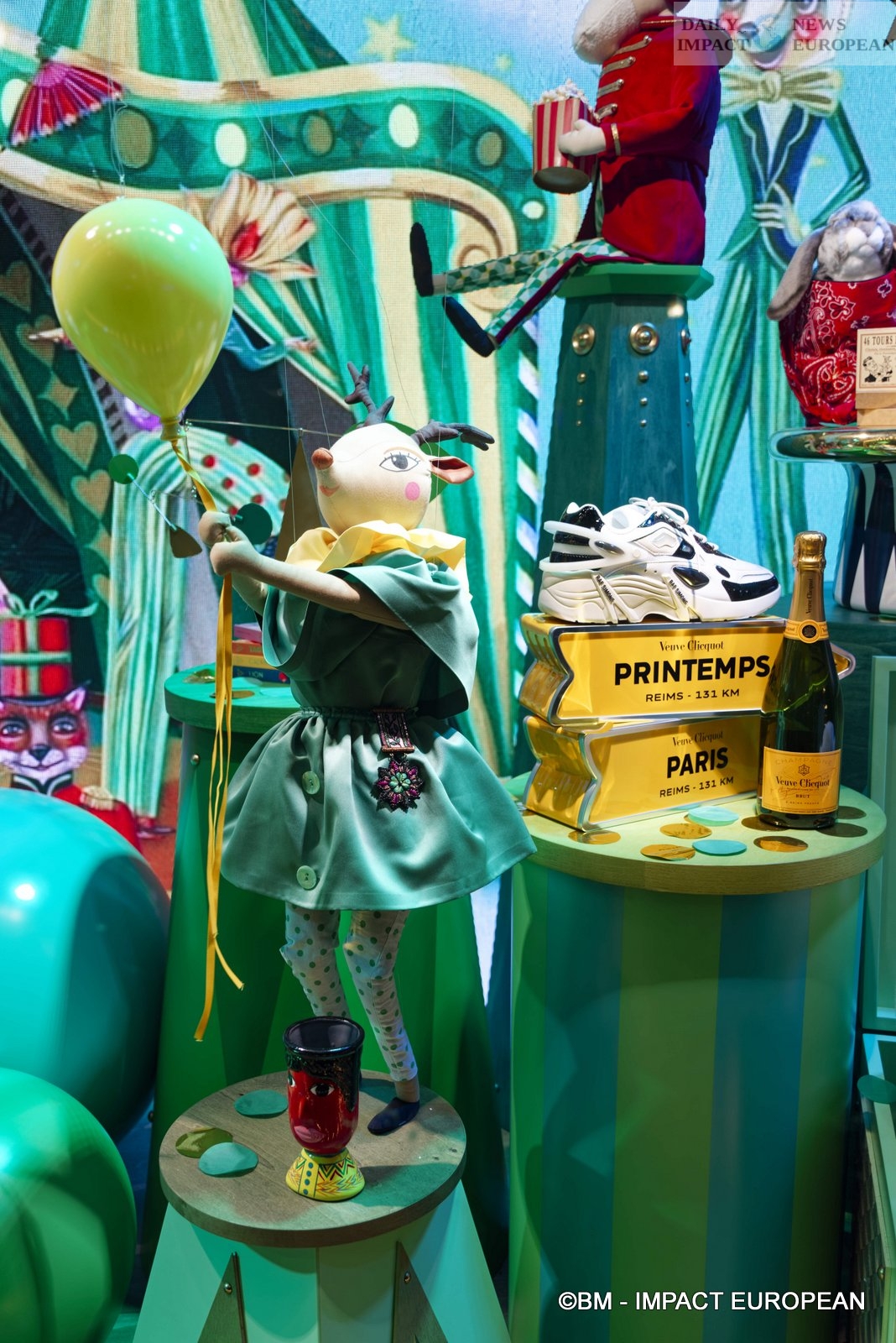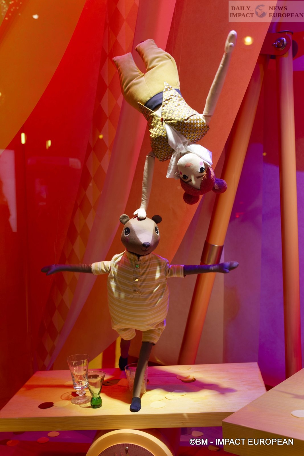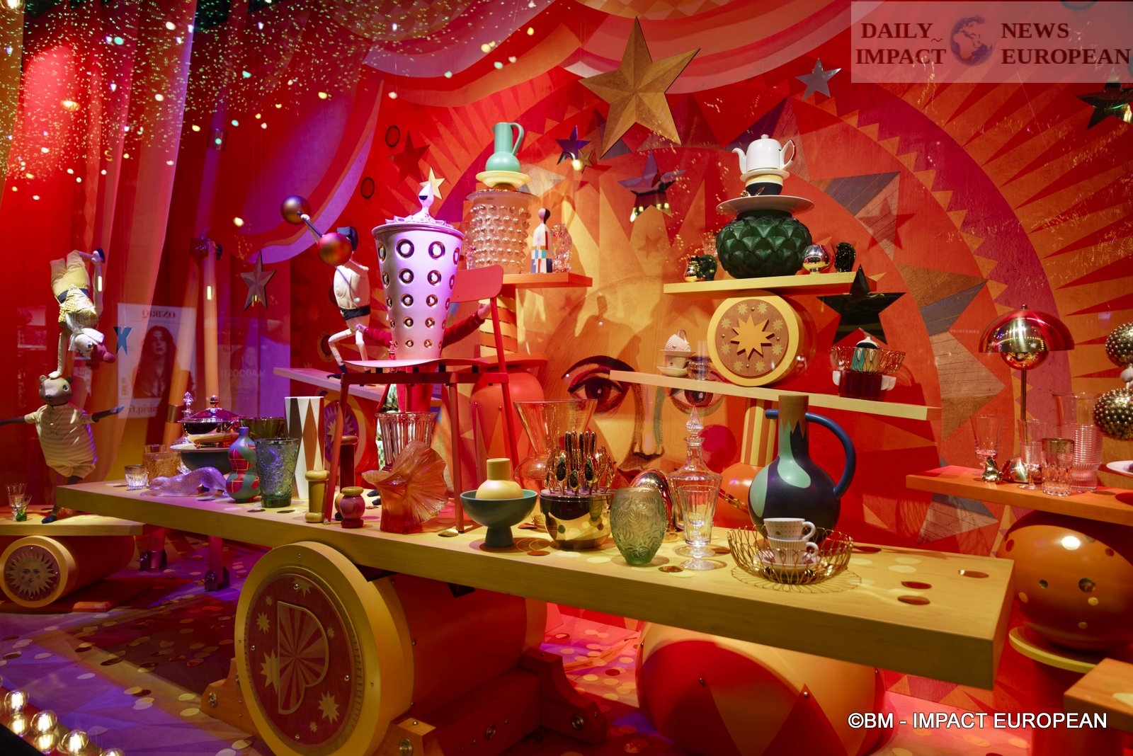 At Printemps Haussmann, Isabelle Huppert and Naomi Campbell ensured the windows whose theme of the year is « The Circus ». We discover 11 paintings with clowns, animals, trapeze artists, jugglers and other circus performers.