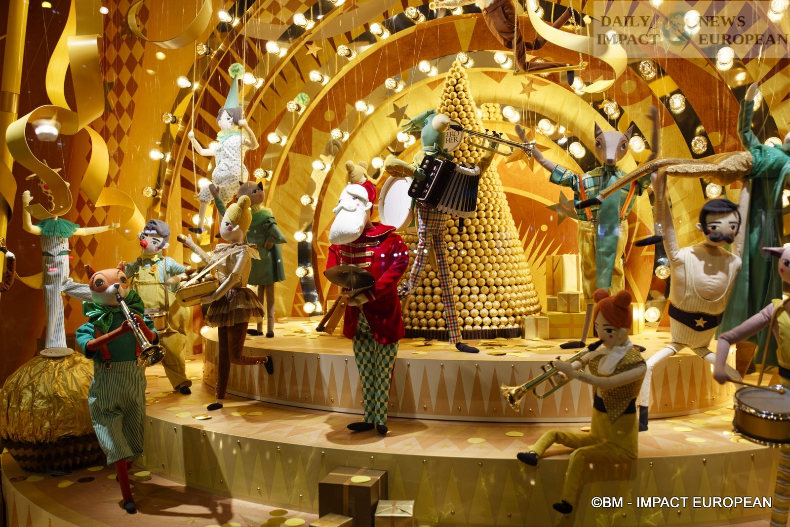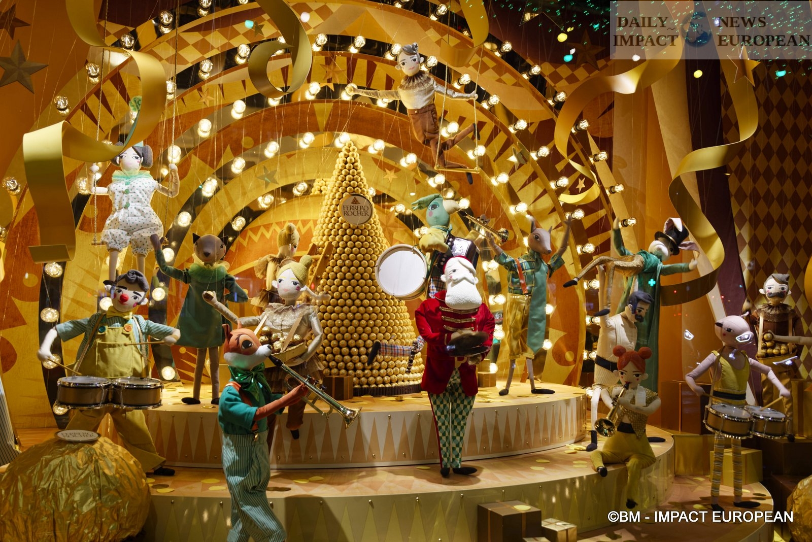 Outside, 3.5 km of light garlands with LED bulbs illuminate the windows. A gigantic golden tree and many activities are inside (makeup and disguise workshops, creative workshops to make your Christmas tree, toy demos and giant board games.