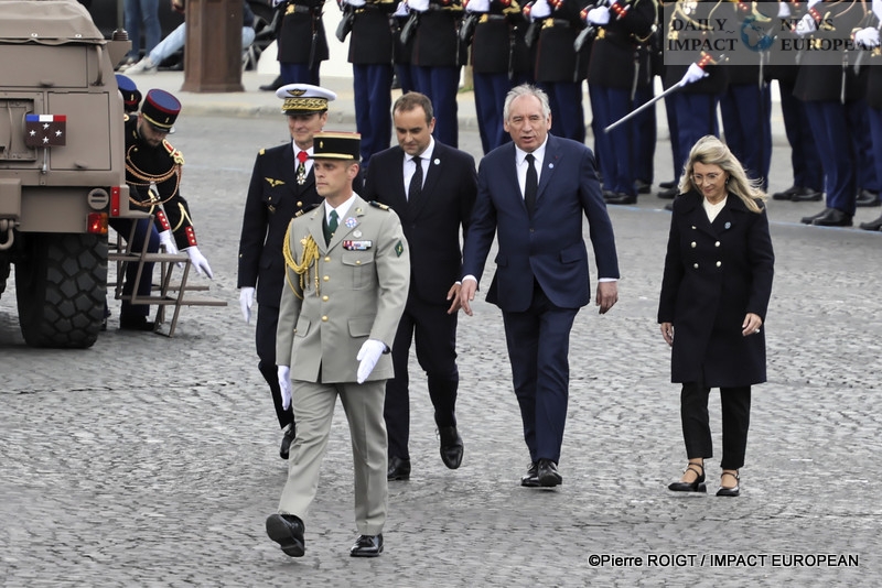 Accompanied by Prime Minister François Bayrou and Minister of the Armed Forces Sébastien Lecornu, the Head of State will now review the troops. « La Marseillaise » resounds in the Place de l’Étoile, where dozens of soldiers are present for these celebrations.