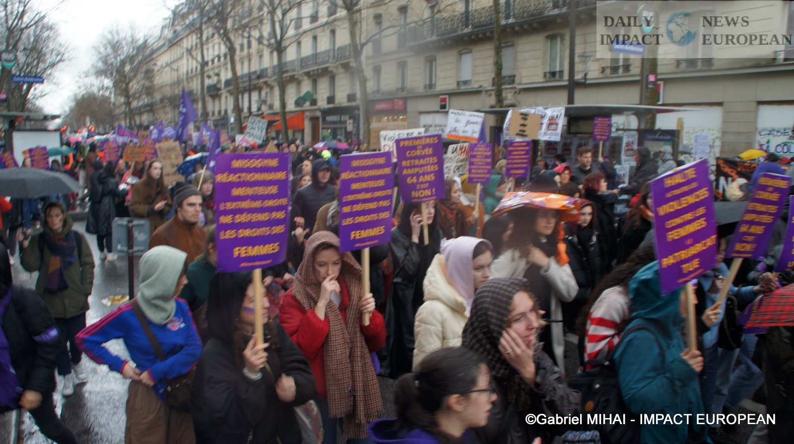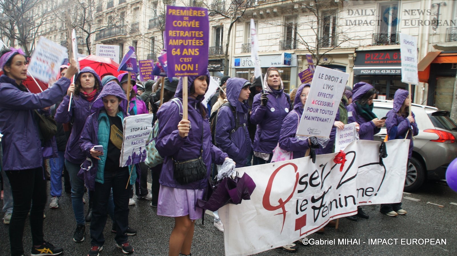 The Parisian demonstration to celebrate Women’s Rights Day, against a background of protest against the pension reform, is currently taking place in Paris, in the rain. It started from Place de la République to join Place de la Nation.