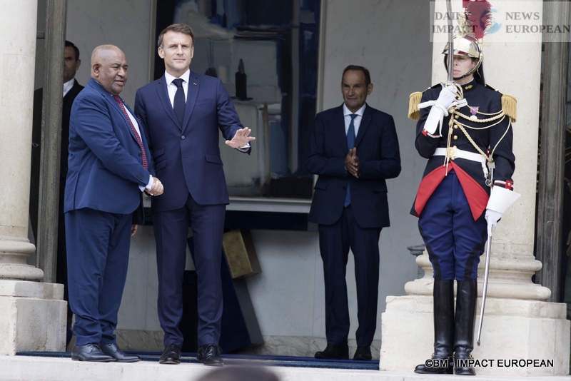 Emmanuel Macron received his counterpart Azali Assoumani, President of the Union of the Comoros, at the Élysée Palace this Friday, July 26, 2024, before receiving the heads of state and government for the inauguration of the Paris 2024 Olympic Games.