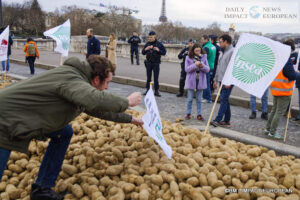 The protestors drove through major avenues such as the Champs-Élysées and gathered near the National Assembly. Slogans like “No country without farmers” and “No farmers, no food” were displayed on tractors. In a symbolic act, between 20 and 30 tons of potatoes were dumped on the Pont de la Concorde and made freely available to the public. This action was meant to show farmers’ frustration and to warn about the future of food sovereignty in Europe.