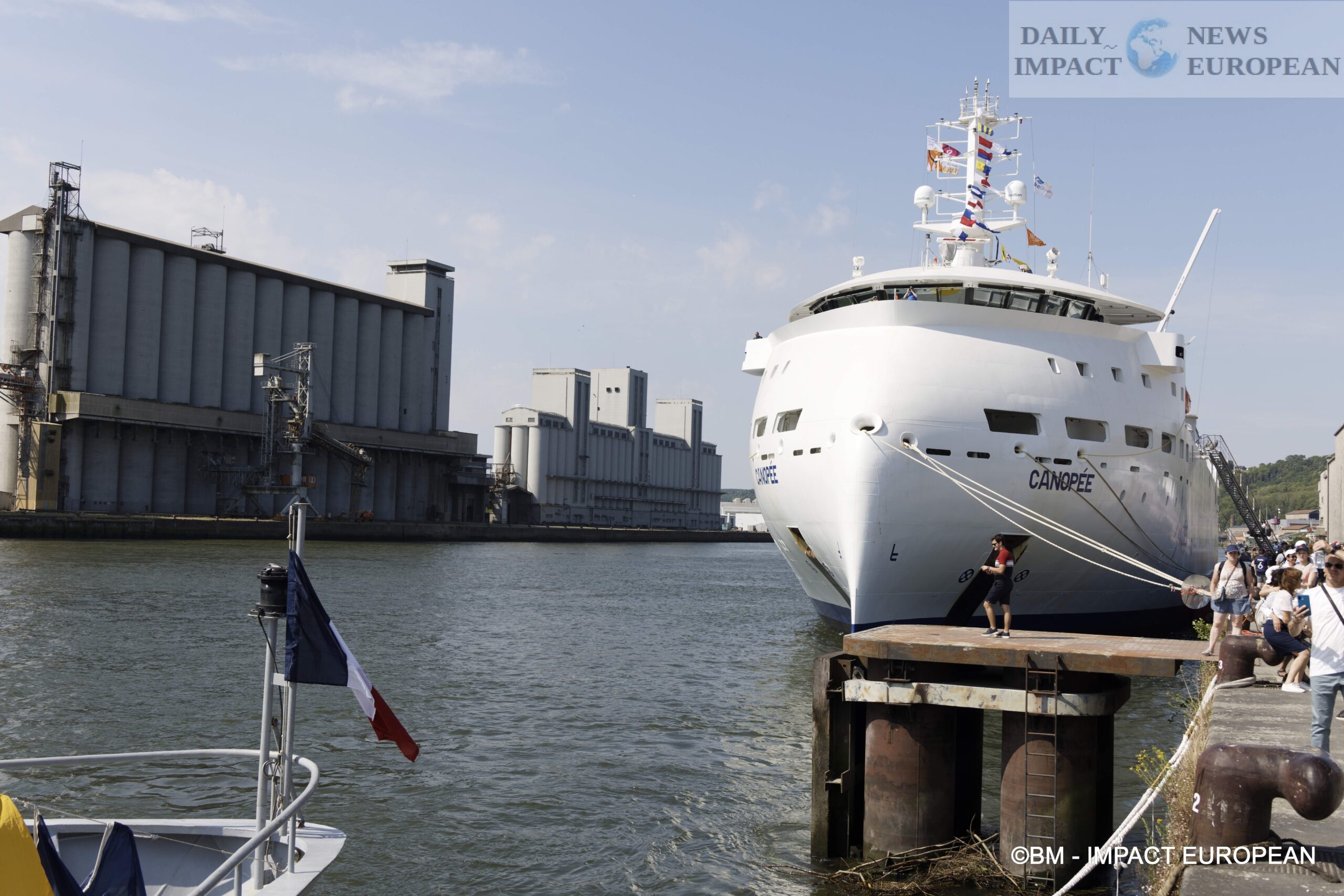 In addition, the Footing des Marins and the Défilé des Kayaks are canceled on June 17 due to pollution. According to the opinion of the Prefecture, the Footing des Marins is replaced by a walk of about 1 km between 8 a.m. and 10:30 a.m. on a route going from the Rouen Normandy Metropolis building on the left bank to hangar 23 on the right bank, passing through the Flaubert bridge. . The parade of kayaks is replaced by a boat trip at the same times and on the same route.