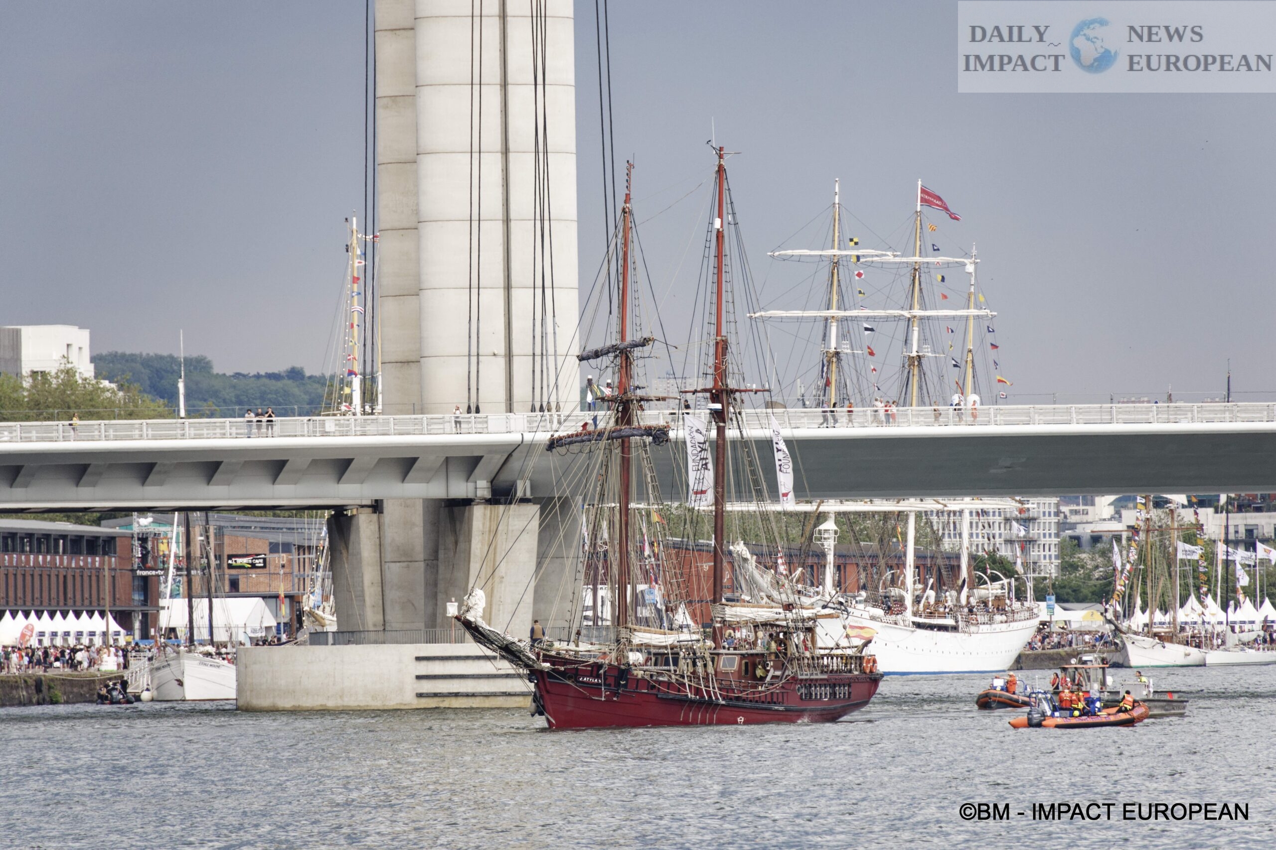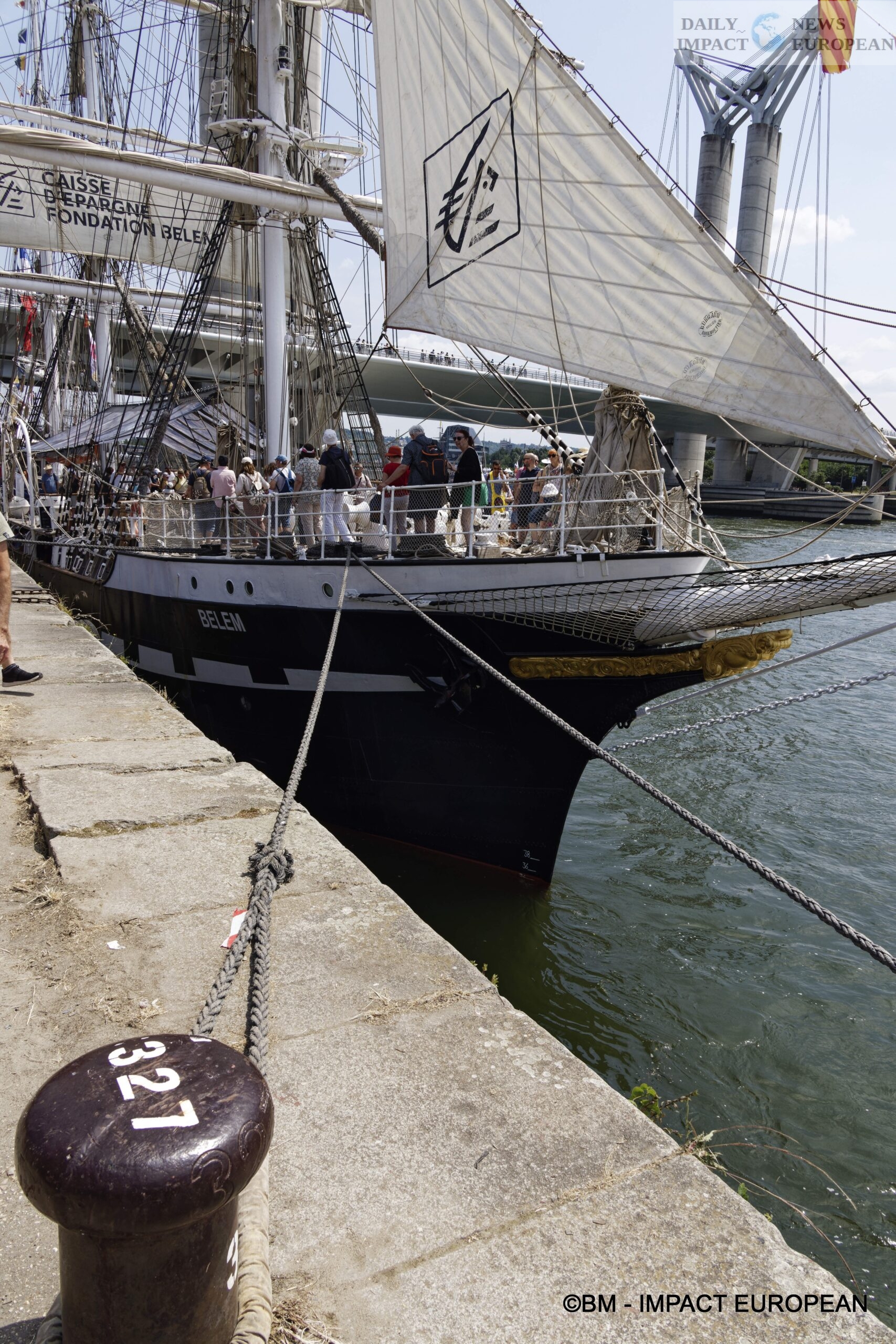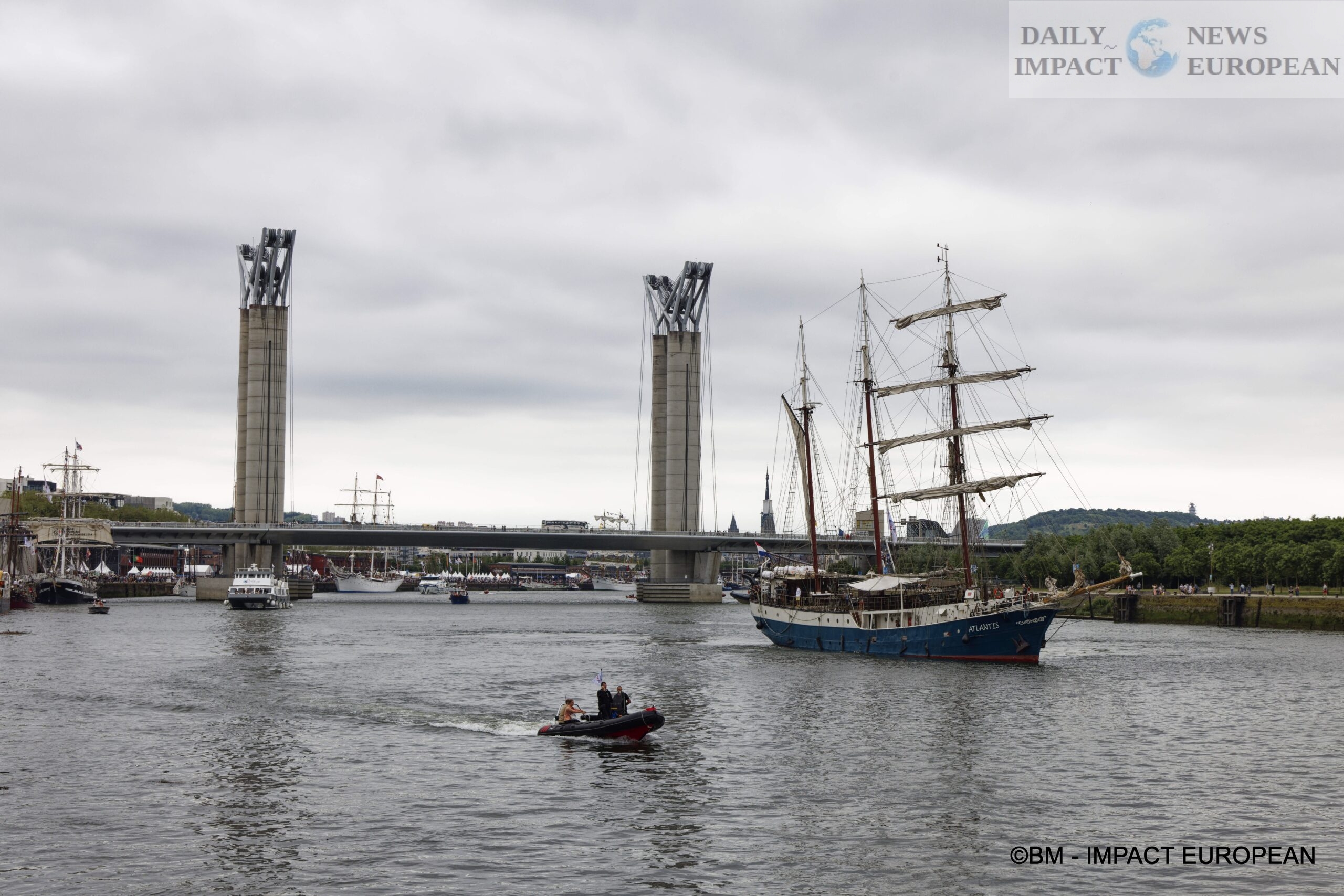 The Armada ends on June 18. The sailboats will leave the quays of Rouen at 8 a.m. and cross the Flaubert bridge, raised between 7 a.m. and 3 p.m. Around 11:30 a.m., the Patrouille de France will fly over the boats between Rouen and the Brotonne bridge.