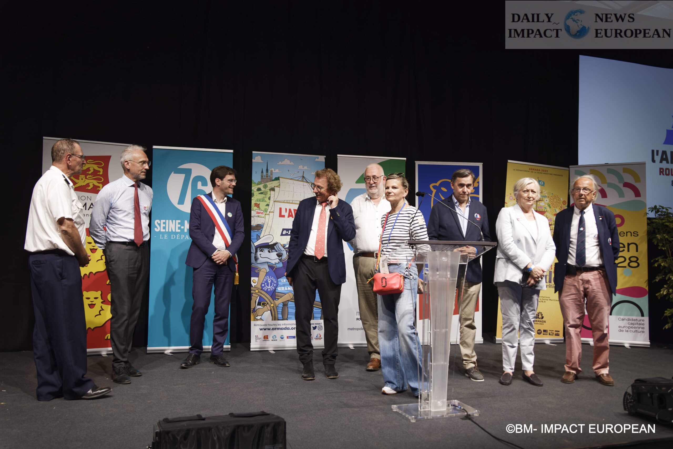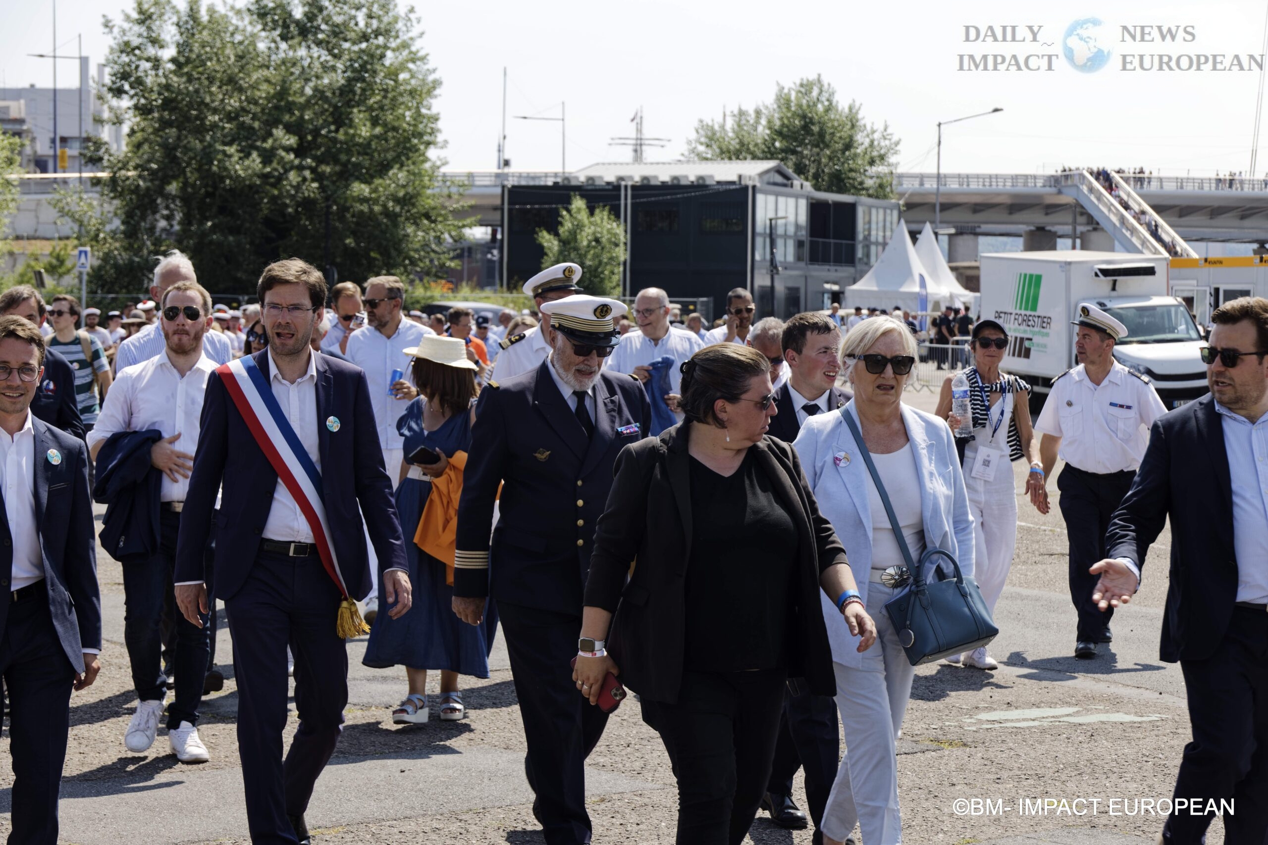 The 2023 Armada was officially inaugurated on June 10 at 10:30 a.m. in the presence of various representatives of communities and territories. The procession, led by Jean-Paul Rivière, president of the volunteers, but also the associations, suppliers and partners left from the left bank (at 108) to join the right bank, passing by the Guillaume Le Conquérant bridge. This year, 45 boats, including 37 old sailboats from all over the world, are taking part in the event. Among them are the Mexican training ship « Cuauhtémoc » or the « Canopée », Ariane Group’s cargo sailboat, propelled by wings rigged on masts 36 meters high.