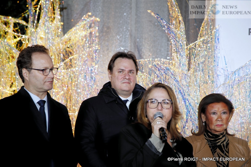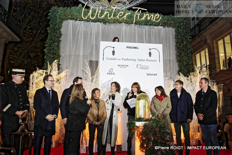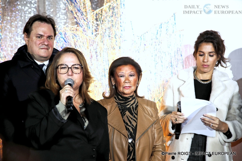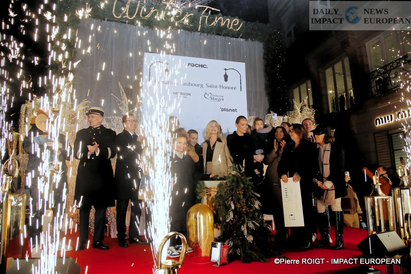 The president Benjamin Cymerman of the committee and the association, surrounded by the actress Emmanuelle Béart and Miss France 2021, Amandine Petit, as well as several public figures, the mayor of Paris Anne Hidalgo and the mayor of the 8th arrondissement Jeanne d’Hauteserre, launched the Christmas lights together! At the corner of rue Royale and rue du Faubourg Saint Honoré.