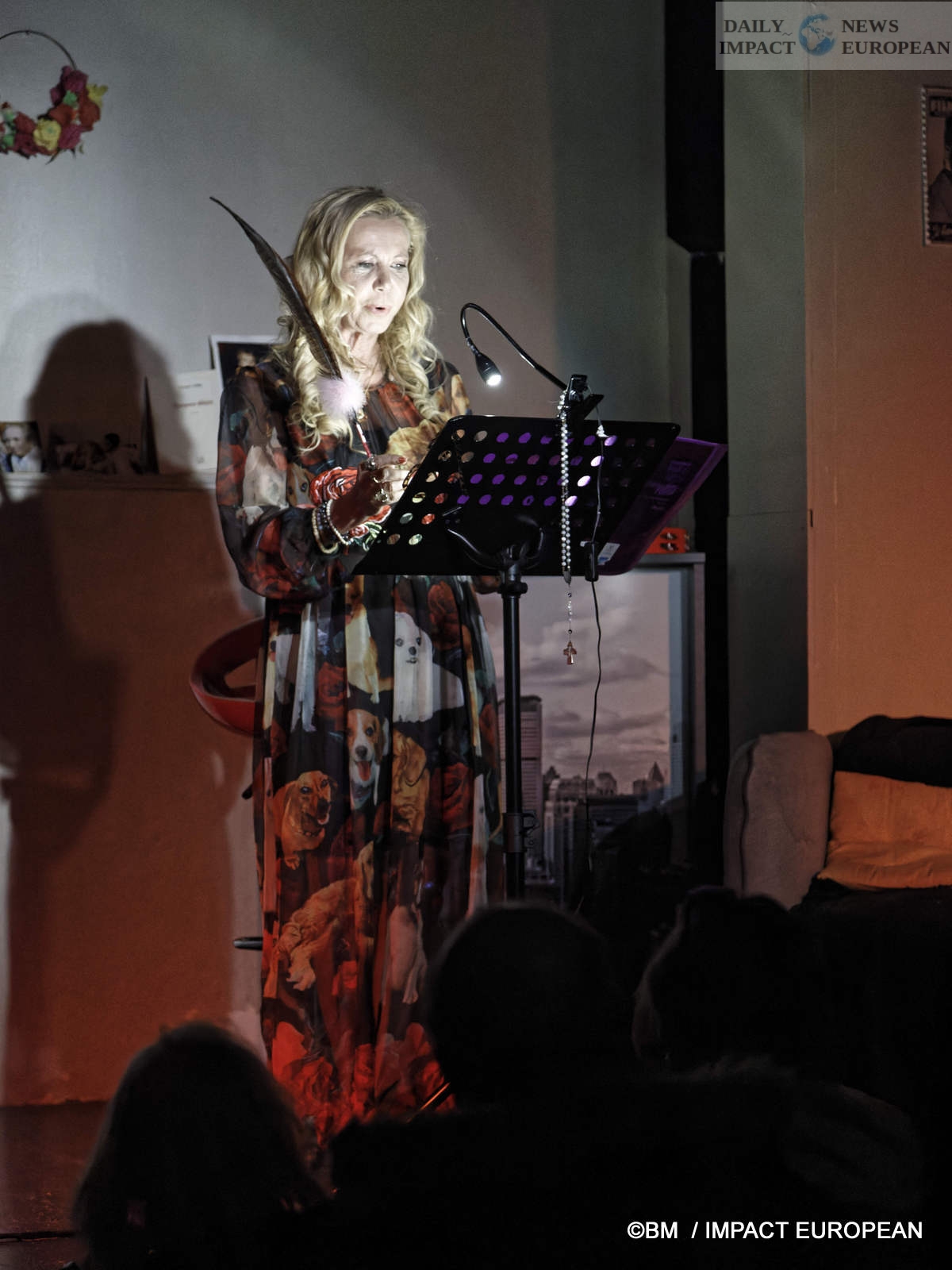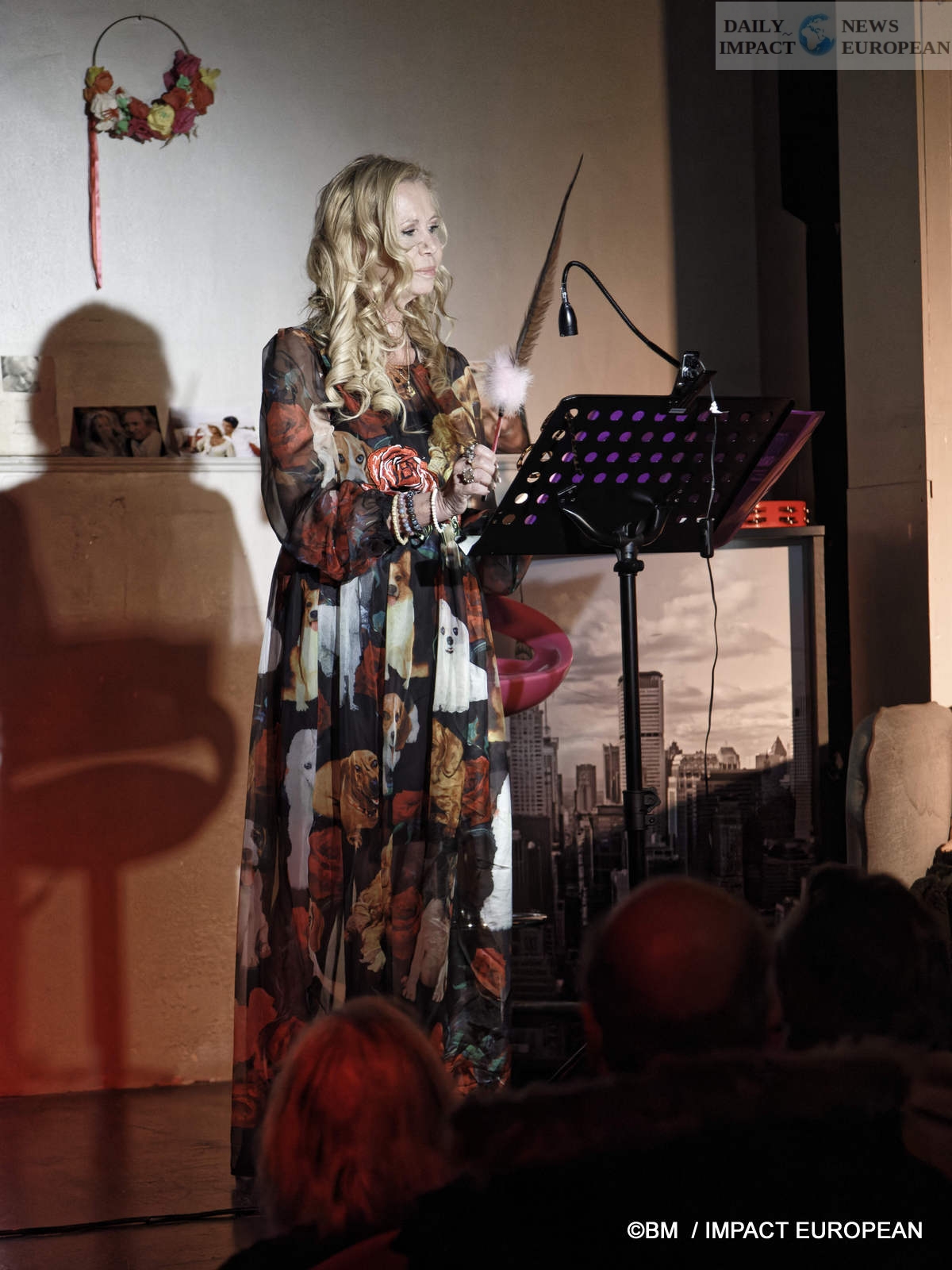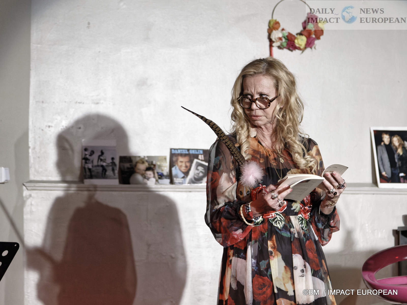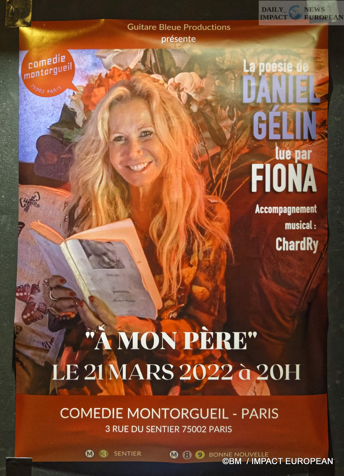 Monday, March 21, Fiona Gélin was on the stage of the Comédie Montorgueil to recite and sing poems written by her father, actor Daniel Gélin. She was accompanied on the guitar by her companion, Richard Bauduin, alias ChardRy, the Man with the Blue Guitar.