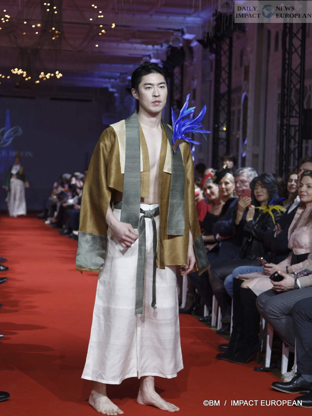 This collection was very different from the one discovered at the restaurant « Les Paillettes » (75008) in 2021; it started with 4 traditional Korean models (hanbok) followed by evening dresses and ready-to-wear outfits.