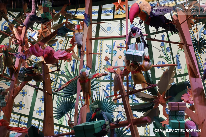 This year, Printemps Haussmann takes you on a journey into the magical and fun world through the windows and floors. There you will meet astonishing creatures on the theme « Paper Christmas ». Paper becomes the messenger of end-of-year wishes, carried by enchanting birds. For 2023, there will be 170,000 paper decorative elements including 95 animated characters, 3.4 km of light garlands and 170 trees spread across all stores. The inauguration took place in the presence of Catherine Deneuve.
