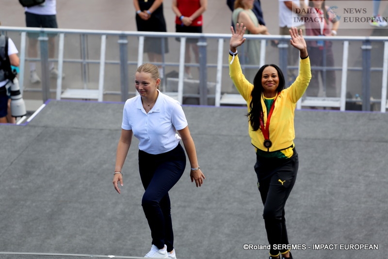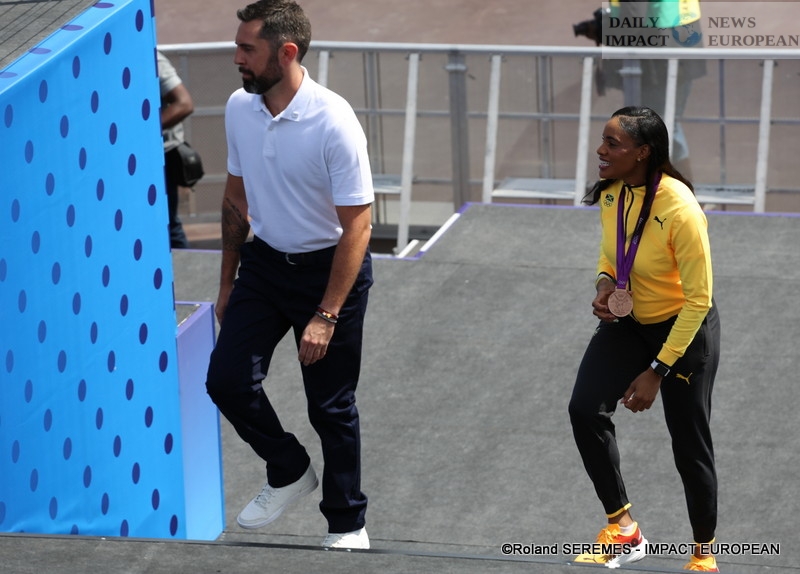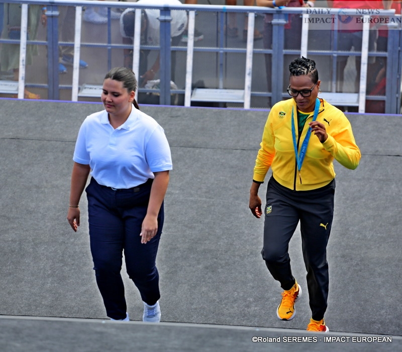 Olympic athletes Beverly McDonald, Chelsea Hammond Ross and Kaliese Spencer-Carter officially received their reassigned Olympic medals during a ceremony held on August 10 at the Parc des Champions in the Trocadero gardens.