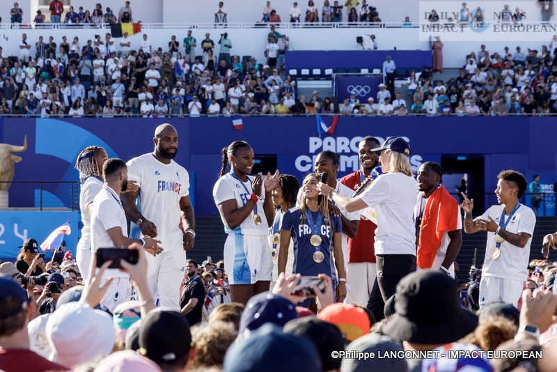 The parade of medal-winning athletes at the 2024 Olympic Games and the presentation of medals from other Olympic Games to those who deserve them following the disqualification of some doped athletes, during the competitions in Sydney, London and Beijing.