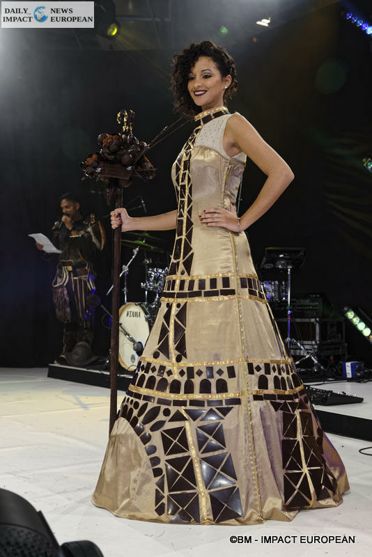 Every day, at 17h, the « showcolat » presented on the podium of the Cacao Show a parade of unique dresses on the theme: 25 years old and still sexy.