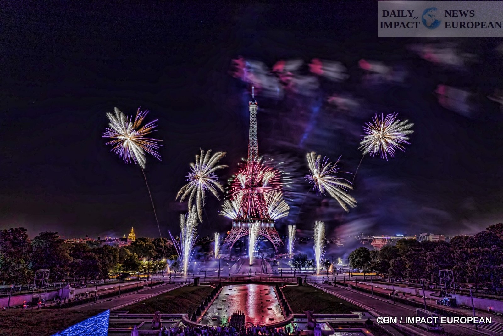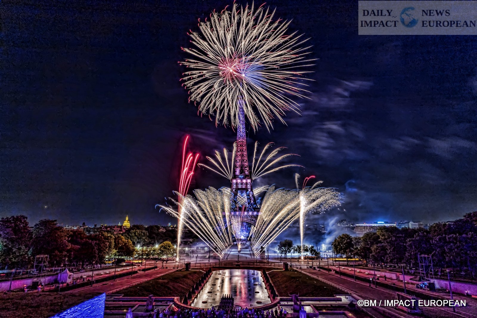 Produced again this year by the Ruggieri company, under the artistic direction of David Proteau, the 2022 fireworks display was meticulously prepared by the company. A week before the event, the pyrotechnic elements arrived from Spain and Toulouse, where the David Proteau company is based, in 7 semi-trailers. the Eiffel Tower, closed to the public for the occasion. Other starting points were on the Pont d’Iéna and the 2 banks of the Seine.