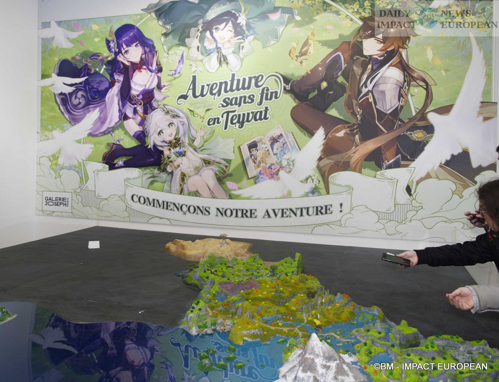 From January 3 to 10, 2023, Silk Road Europe and Ho Yoverse, new brand of services and entertainment in the world of video games, present an exhibition revealing works by a team of artists, designers, editors, animators and musicians, entitled « Endless adventure in Teyvat ». Between January 3 and 8, the exhibition collected more than 3,000 visits per day and more during the weekend, where we could see endless queues of fans.