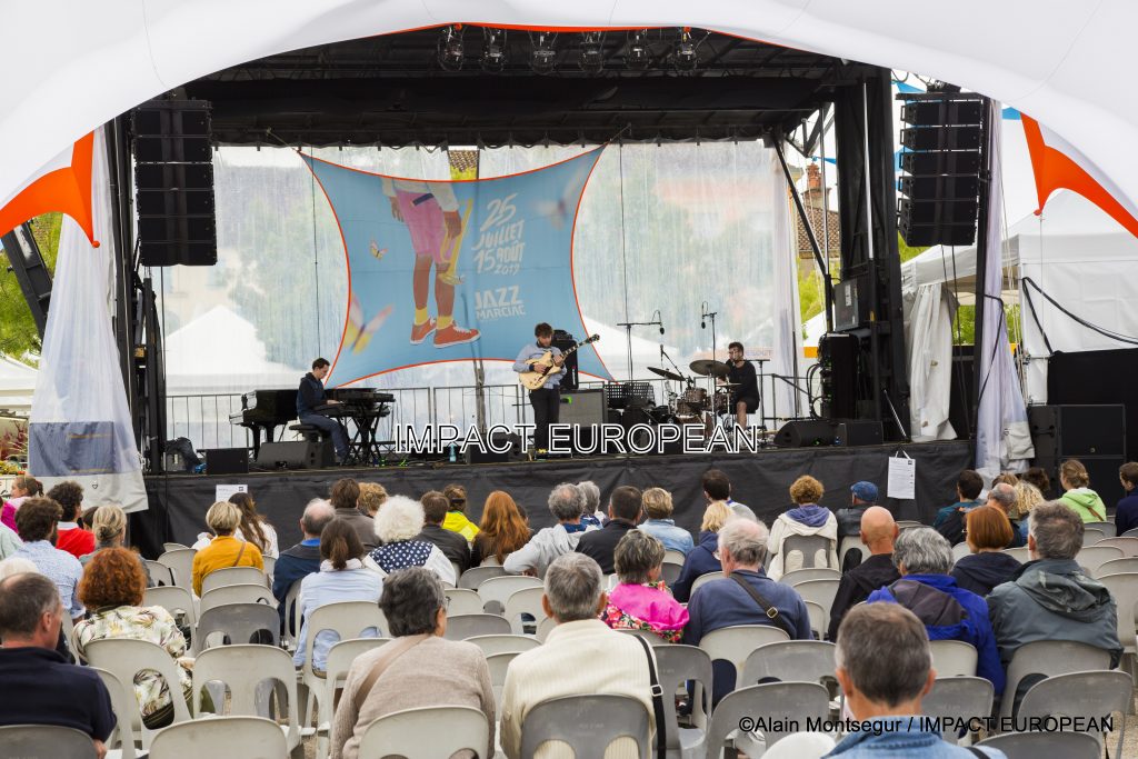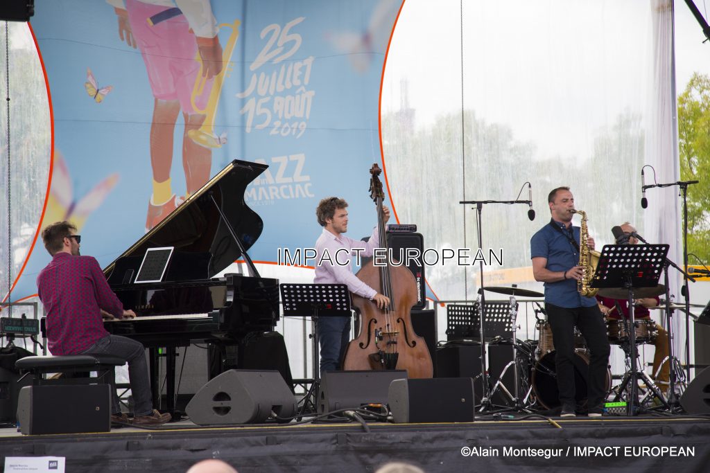 This year, the sun was on the table for the Sting concert that opened the Festival. under the hat of the 13th century bastide. The following day, George Benson’s performance was warmly received by the audience despite the rain falling all evening. The first part was organized by a young group from the Toulouse region and supported by the Festival de Marciac, Amaury Faye Trio composed by Amaury Faye (piano)