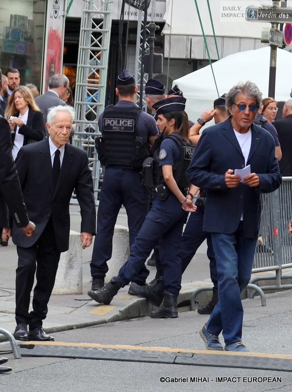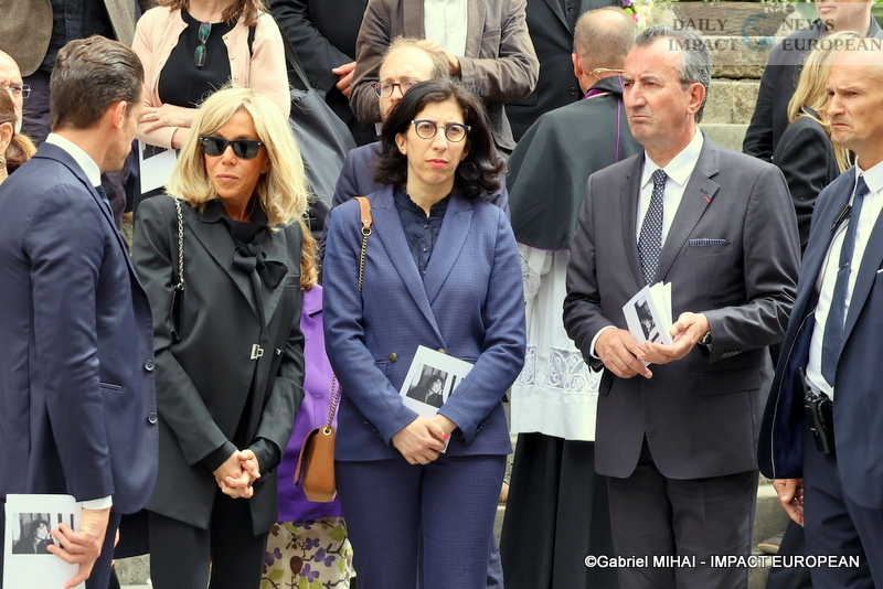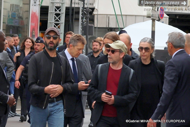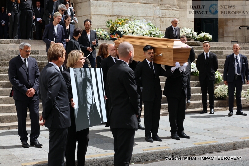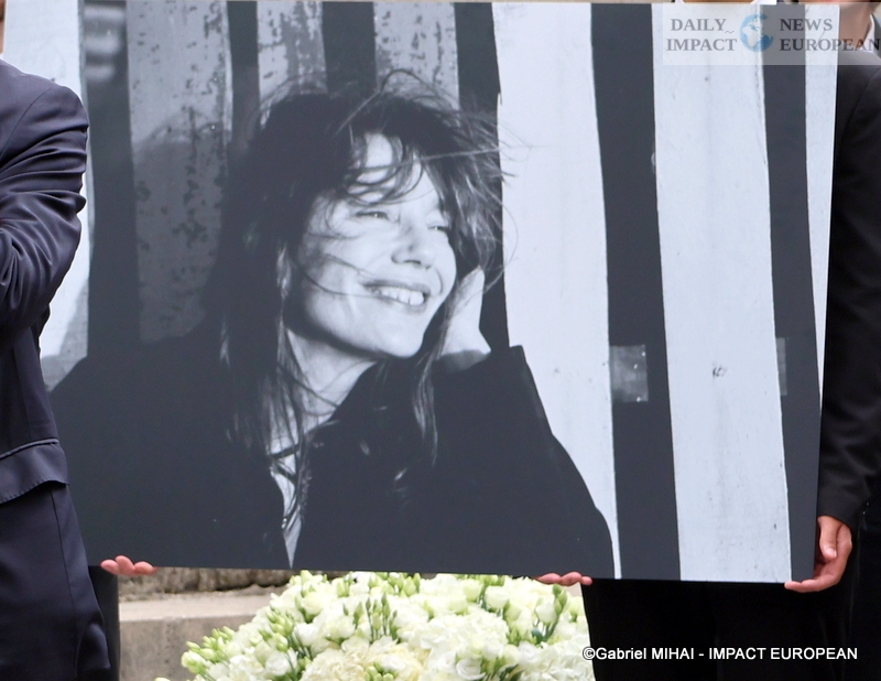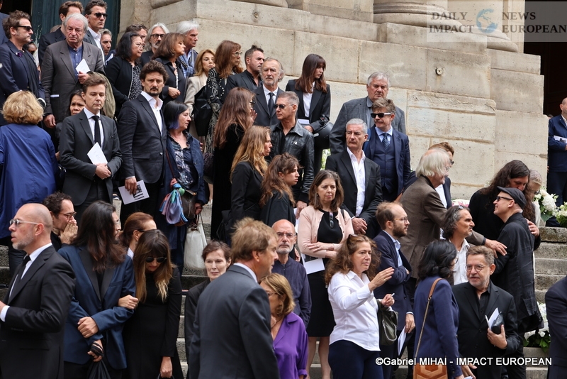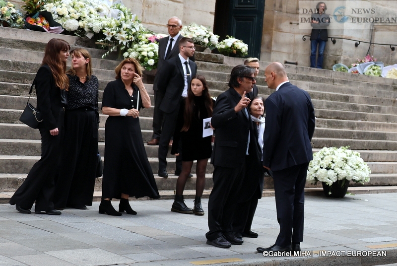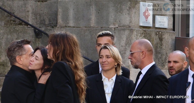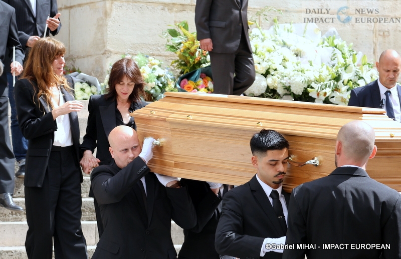 She had wished that the song « Jane B » which, according to her, defined her accompanies her funeral. Many personalities were present at St Roch church around her daughters Charlotte Gainsbourg and Lou Doillon, her last companion Olivier Rolin and the actress’ 5 grandchildren (Ben, Alice and Joe Attal; Marlowe Jack Tiger Mitchell, Lou’s son and Roman de Kermadec, Kate’s son) to pay her a last tribute. Among them were Jacqueline, Serge Gainsbourg’s older sister, aged 97, Yvan Attal, companion of Charlotte Gainsbourg and Stéphane Manel, companion of Lou Doillon and father of her second child born in 2022, Olivier Gluzman, his agent, Andrew Birkin, his brother, actresses and actors Catherine Deneuve, Chiara Mastroianni, Carole Bouquet, Maïwenn, Charlotte Rampling, Emmanuelle Béart, Sandrine Kiberlain and her daughter Suzanne Lindon, Nicole Calfan, Bambou and her son Lucien Gainsbourg (Lulu), Jean-Luc Anglade, José Garcia, Pierre Arditi; the singers and singers Vanessa Paradis accompanied by Samuel Benchetrit, Sheila, Alain Souchon who came with his sons, Salvatore Adamo, Mathieu Chedid, Etienne Daho, Benjamin Biolay, Eddy de Pretto, as well as the presenter Nagui. The wife of the President of the Republic Brigitte Macron and the Minister of Culture Rima Abdul-Malak. had made the trip. Access to the church was reserved for relatives and guests, but a giant screen at the corner of rue S-Honoré and rue des Pyramides broadcast the ceremony live, which was followed by cremation at Père-Lachaise and then burial in the Montparnasse cemetery (division 11) alongside his daughter Kate who died in 2013 and not far from Serge Gainsbourg (avenue Transversale, 1st division, 1st section).